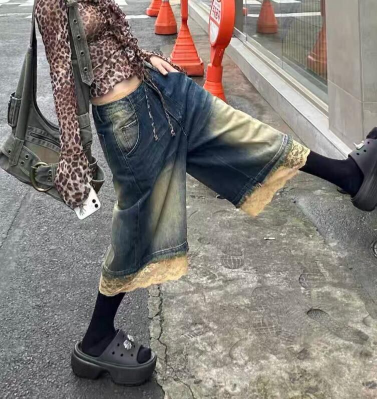 ズボン パンツ デニム ジーンズ 七分丈 ワイドパンツ レイヤード レディースボトムス