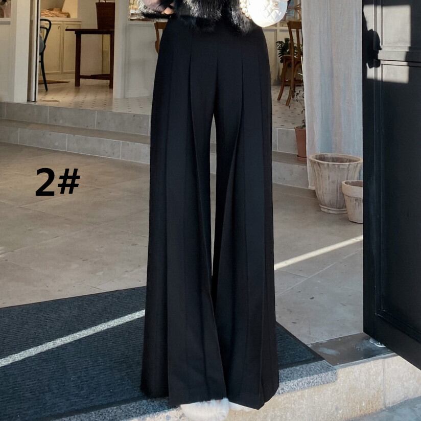 ワイドパンツ プリーツ レディース ロング丈 ズボン ボトムス ハイウエスト カジュアル 上品 気質