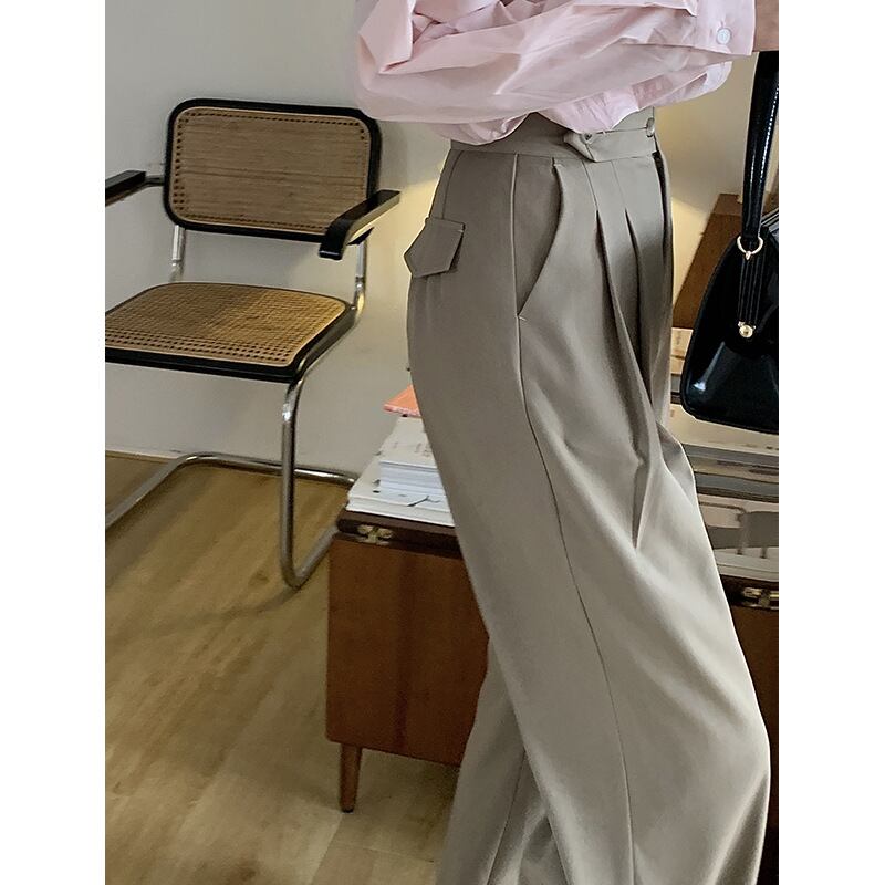 春 新品 ズボン 闊脚 スーツパンツ 女 韓国風 ハイウエスト ゆったり ストレート