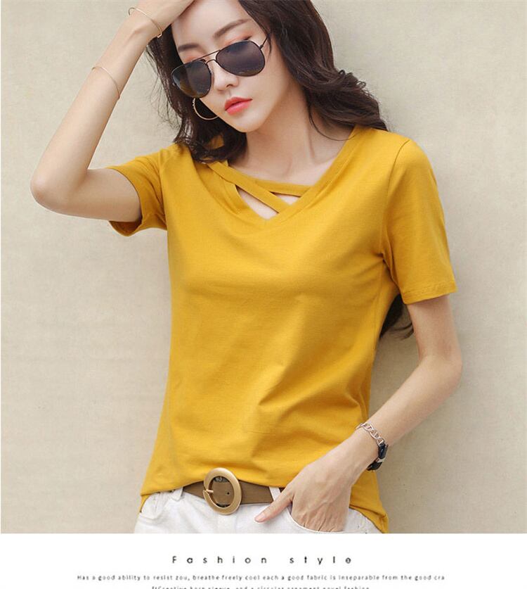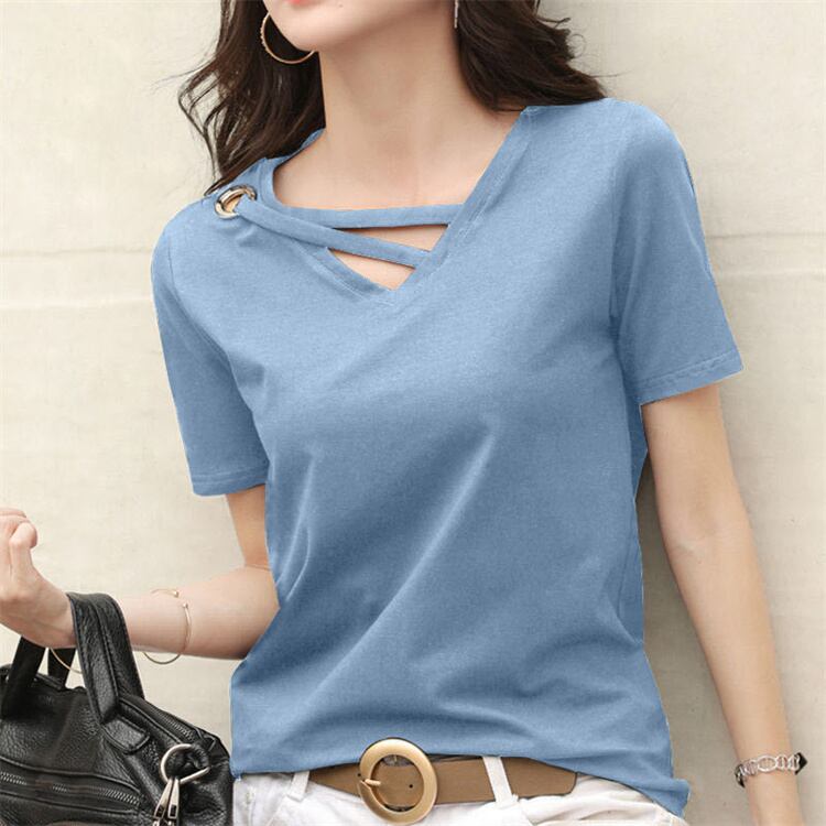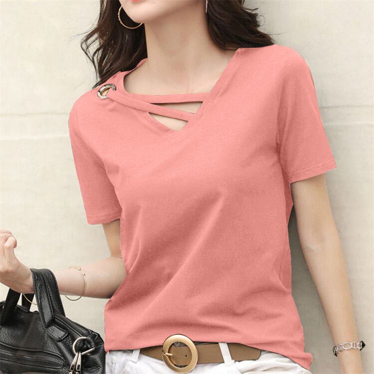 Tシャツ レディース 夏 カジュアル 半袖 Vネック 無地 綿