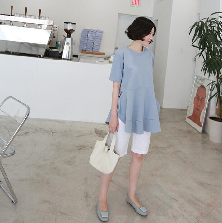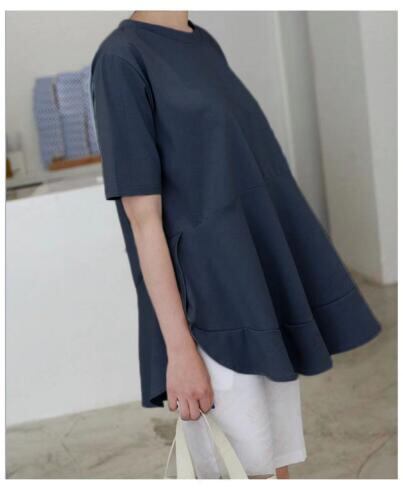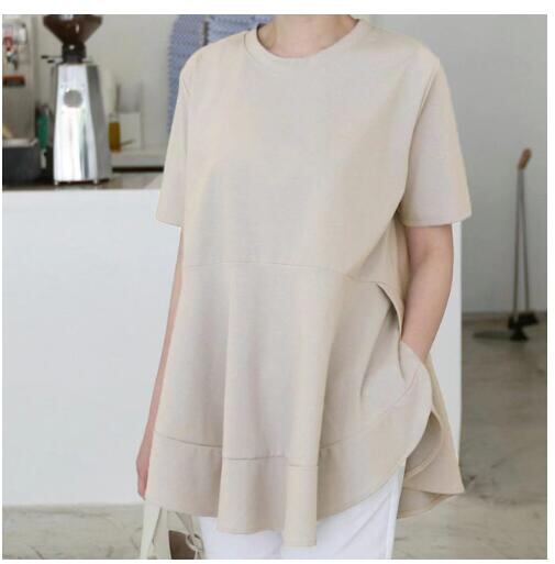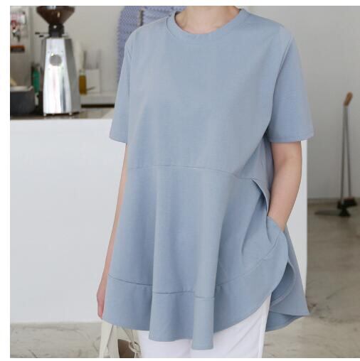 レディースTシャツ トップ無地ラウンドネックルーズ半袖Tシャツ 夏