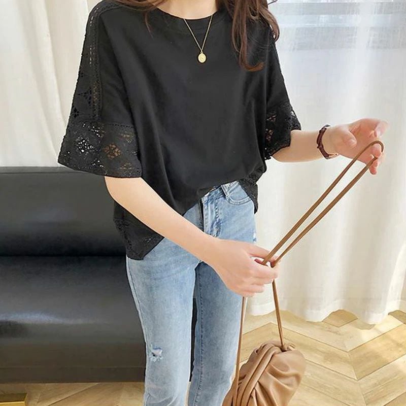 レディースTシャツ トップ クルーネックハーフスリーブニットバットシャツ