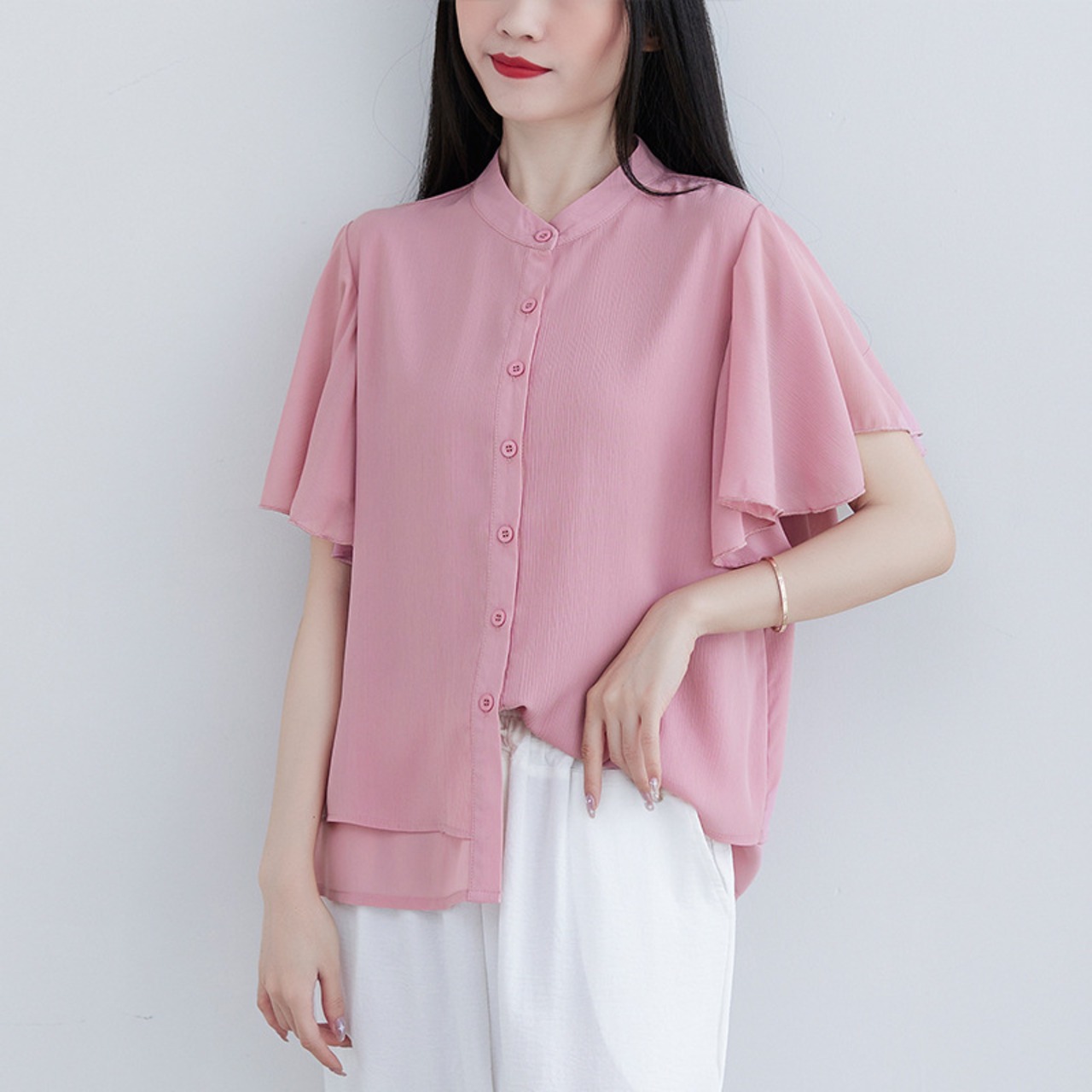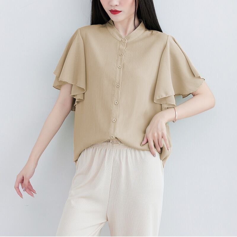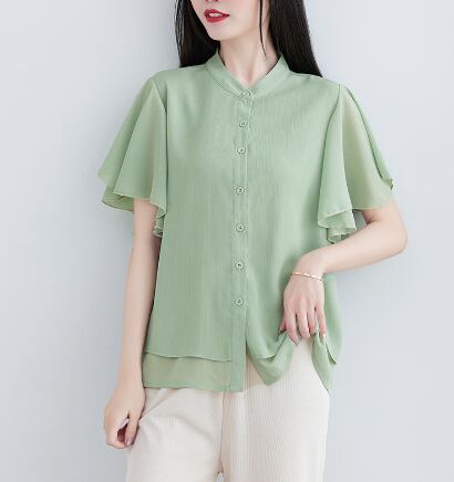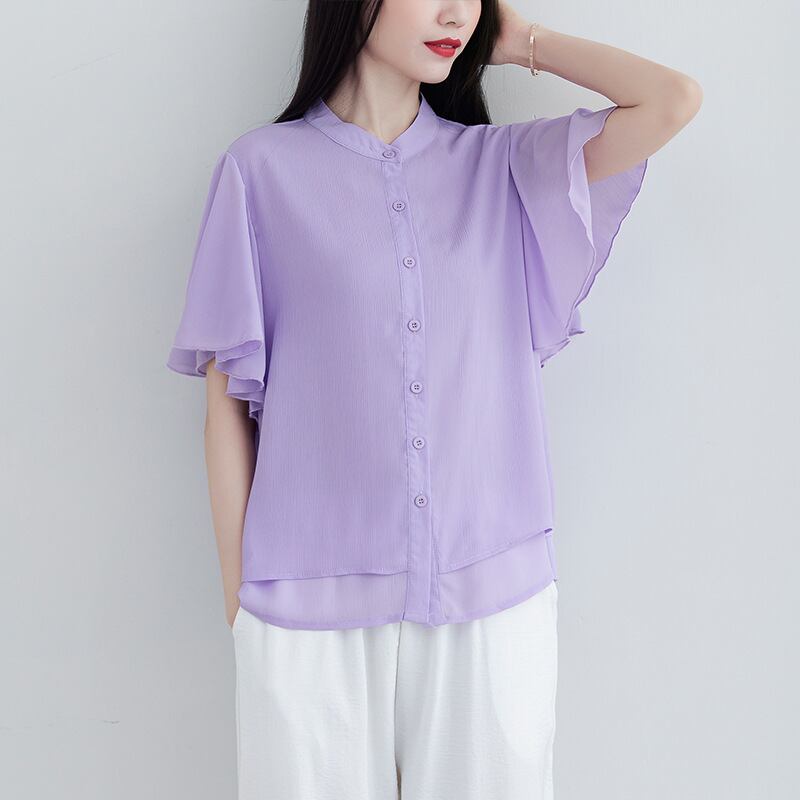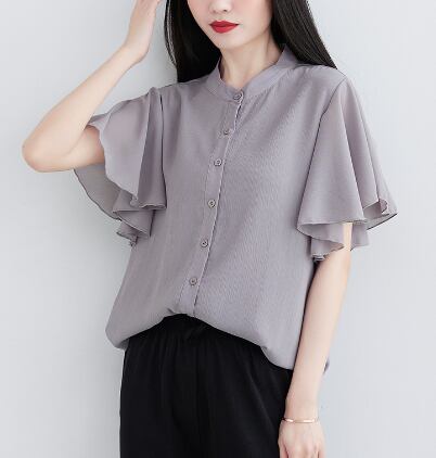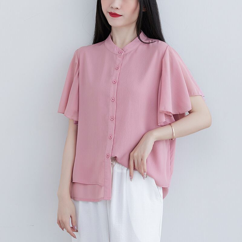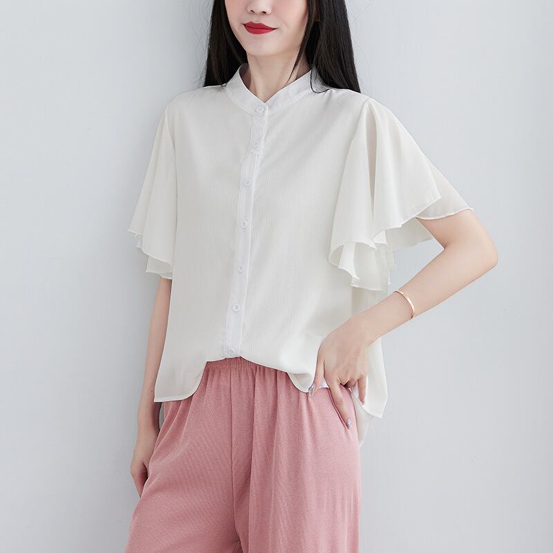 レディースTシャツ トップ 無地ルーズフリル半袖シャツ 夏
