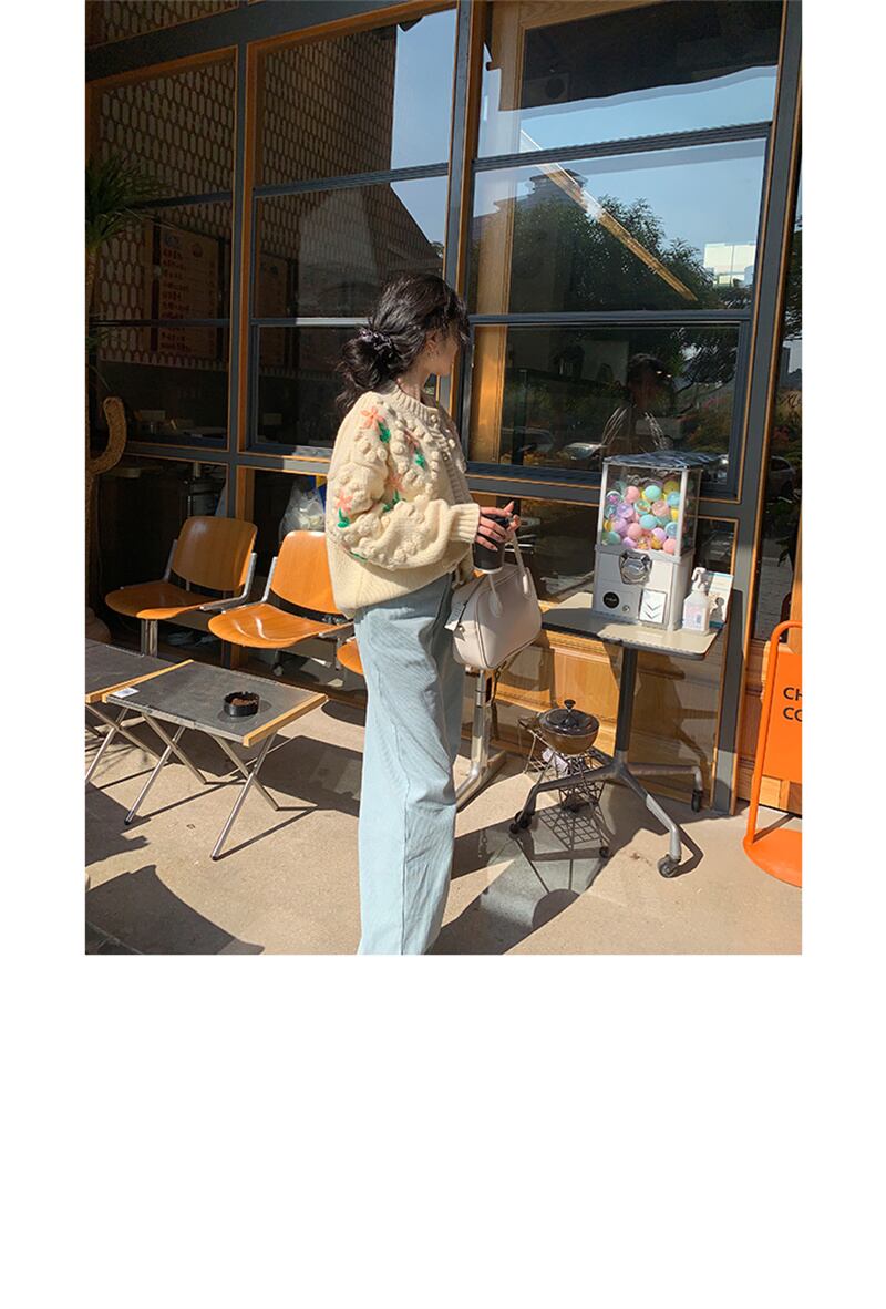 2022冬INS★韓国風 レトロ お花 刺繍 シングルブレスト カーディガン