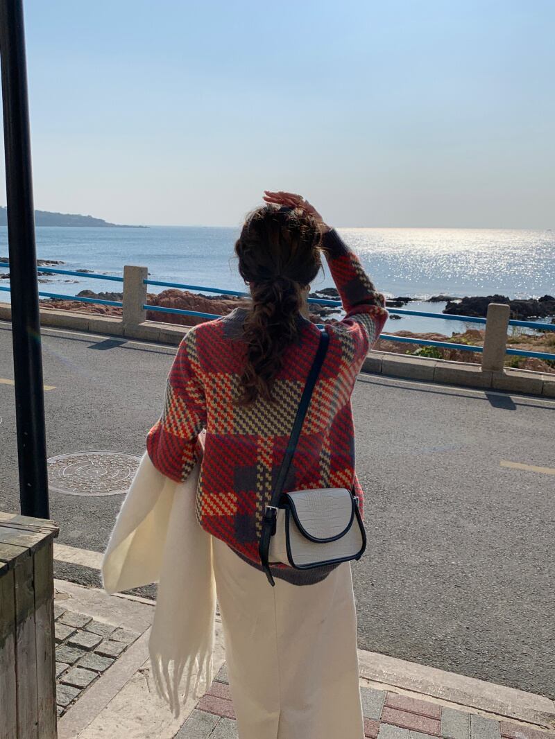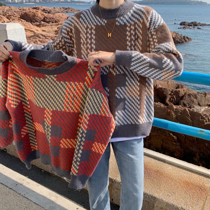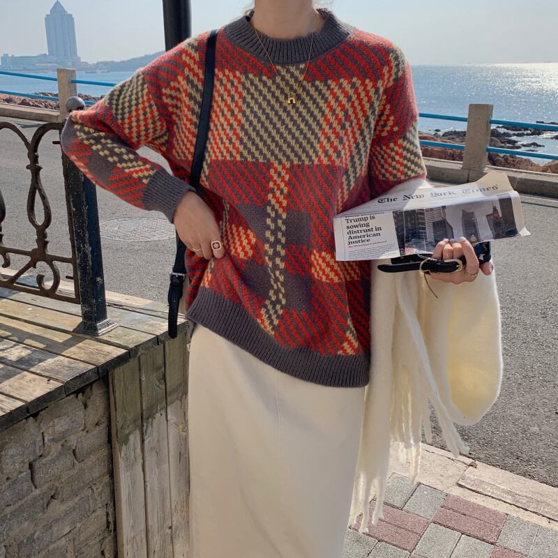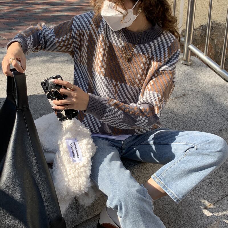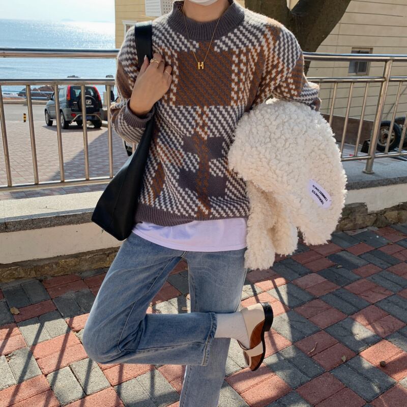 2022冬INS★韓国風 レトロ チェック柄 ニット セーター