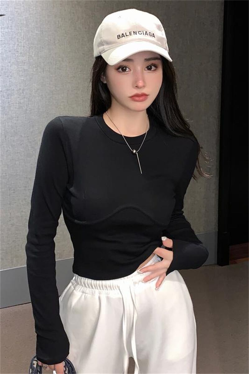 2022冬INS★ファッション気質満点 へそ出し トップス 長袖Tシャツ