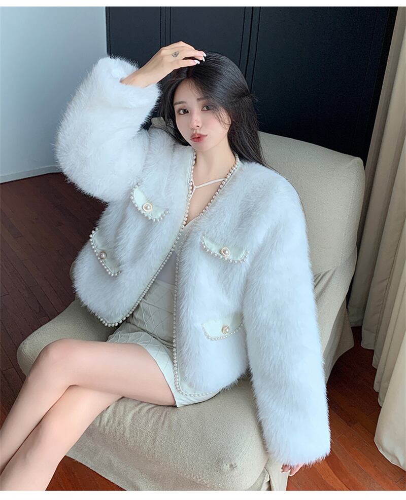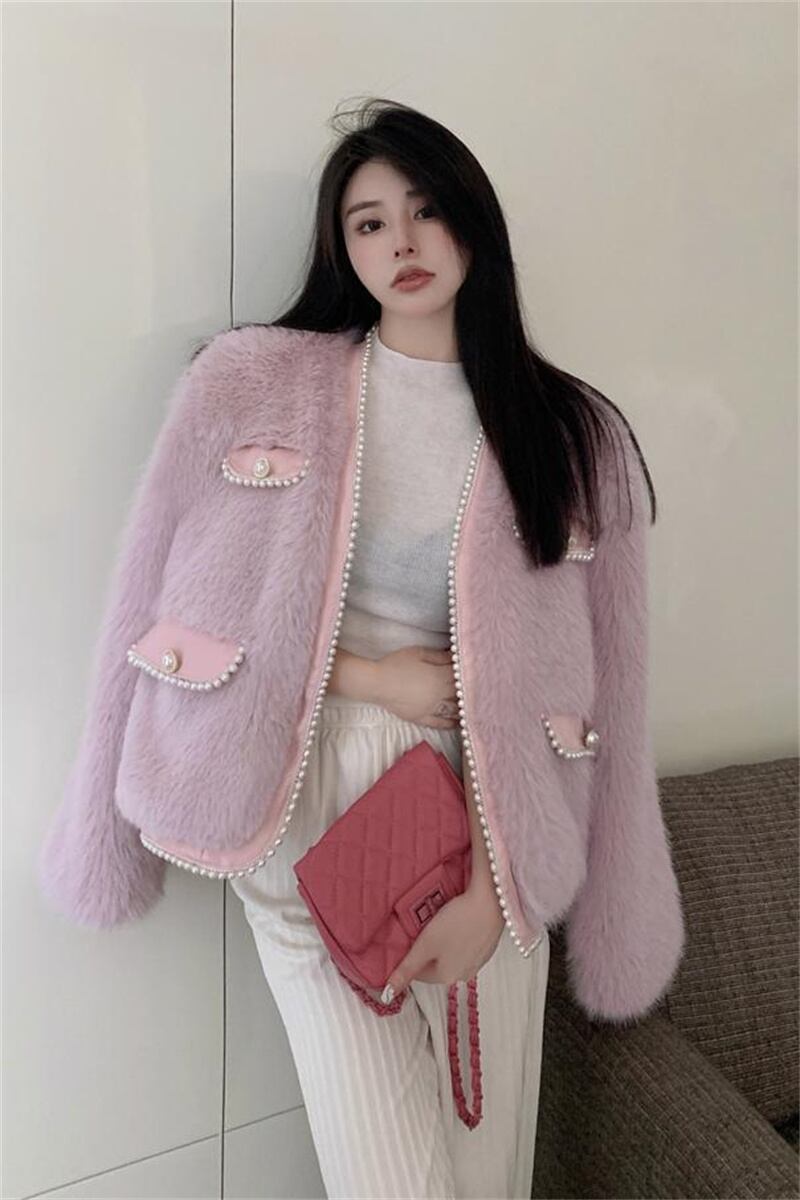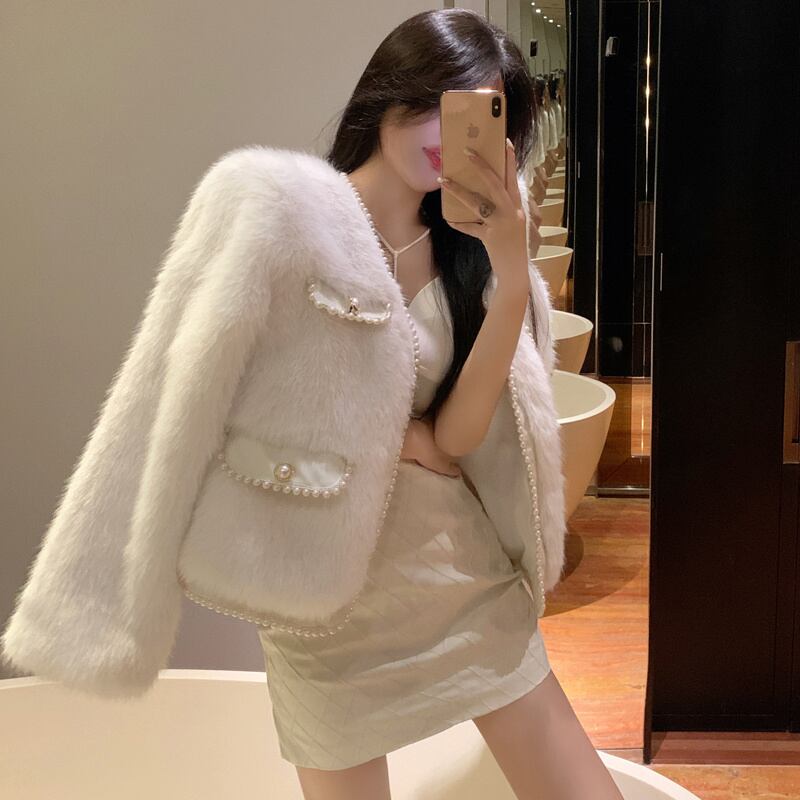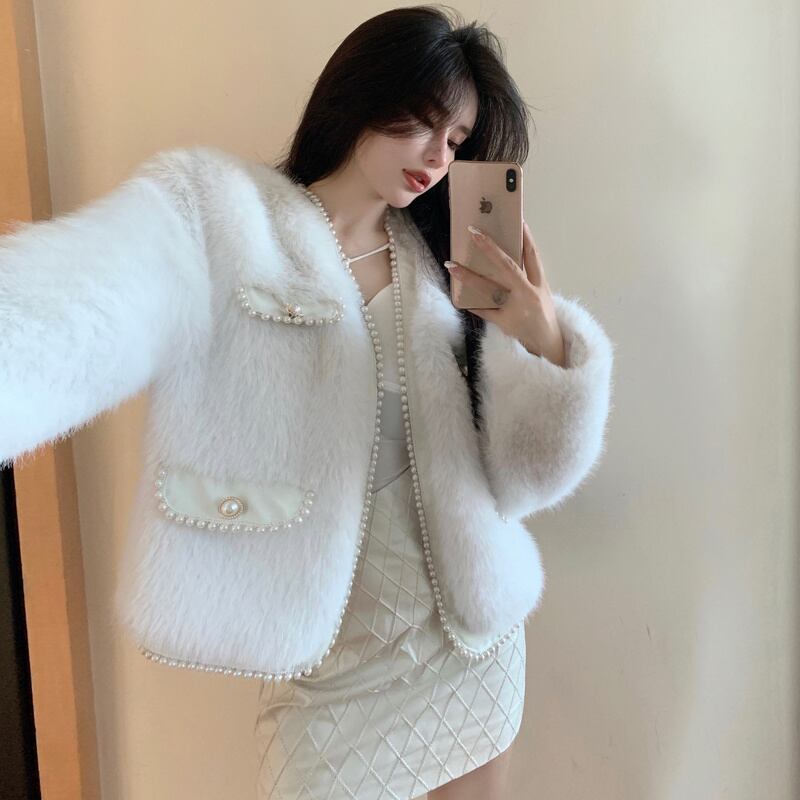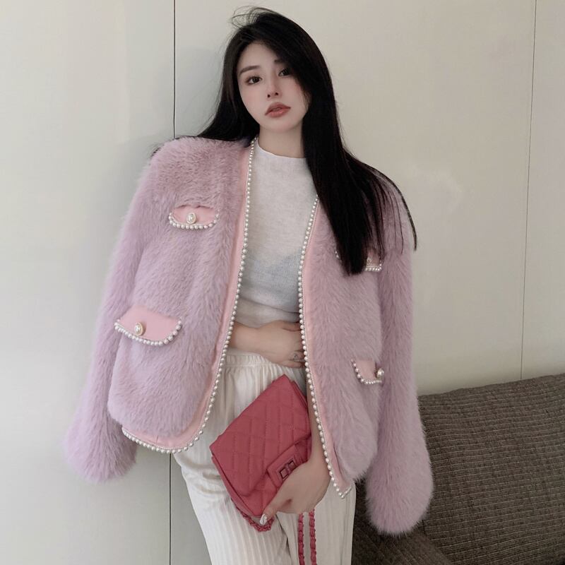 秋INS 新作 好感度UP レトロ 韓国風 エレガントパール 2色 毛糸 コート