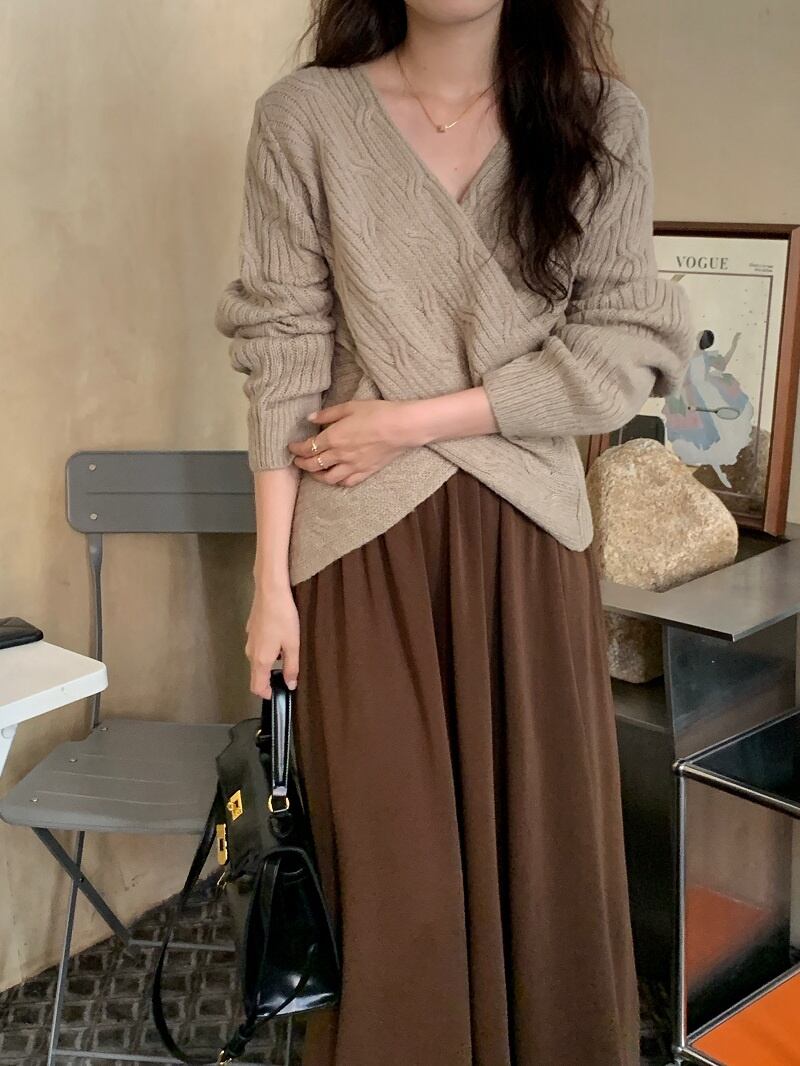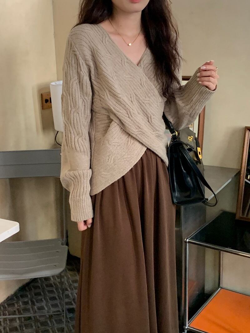 2022冬INS★ファッション超気質 ゆったり Vネック ツイスト模様 ニットウェア セーター