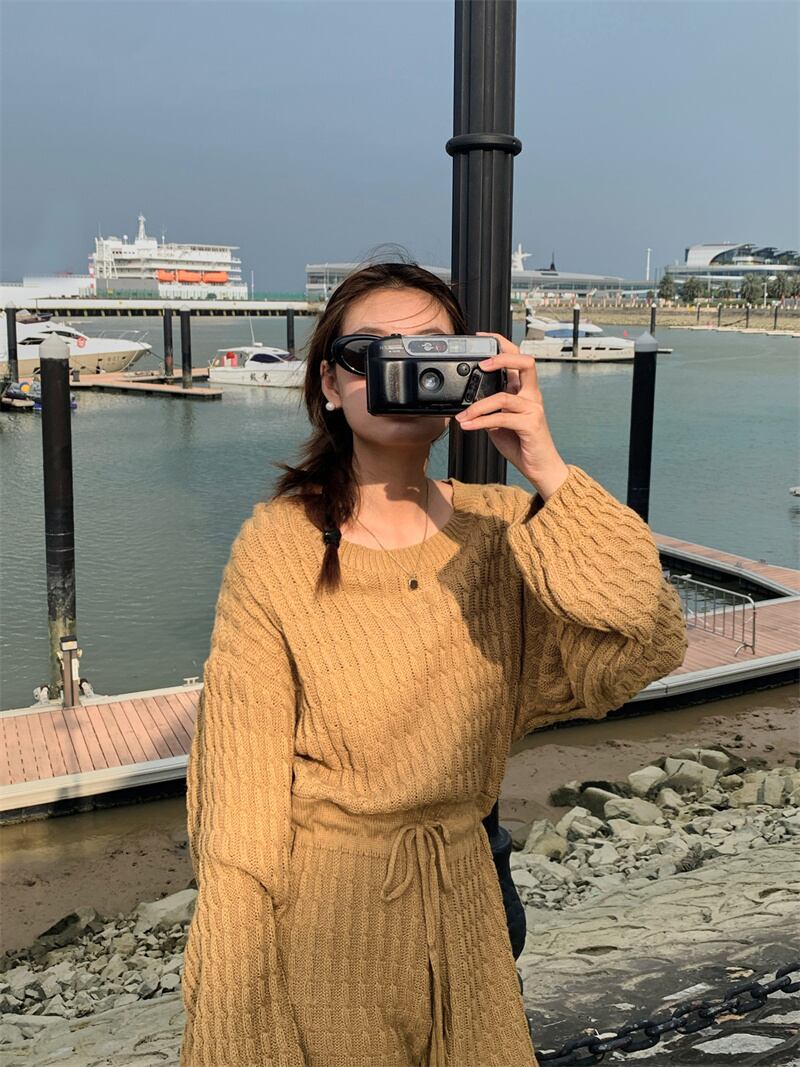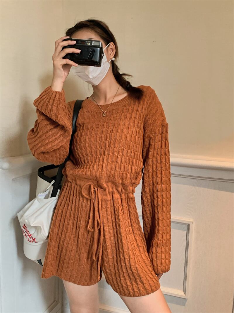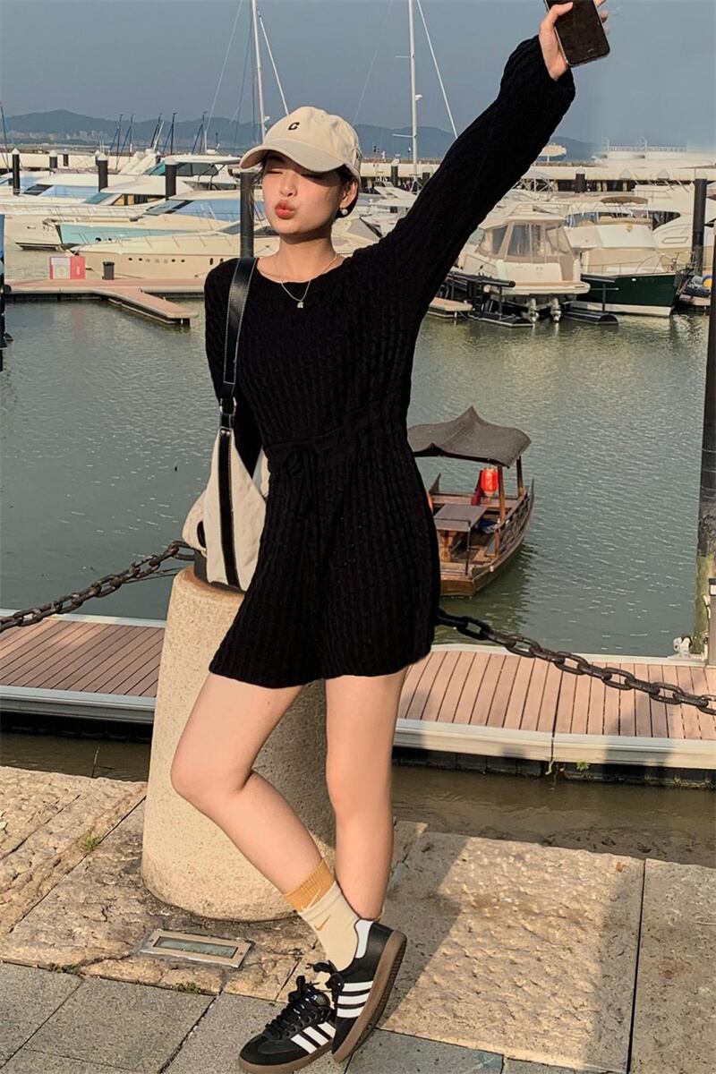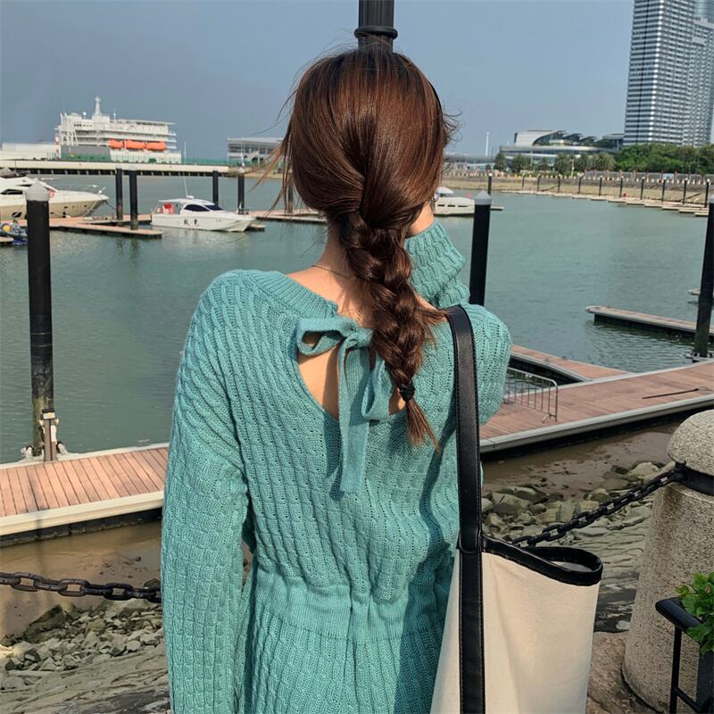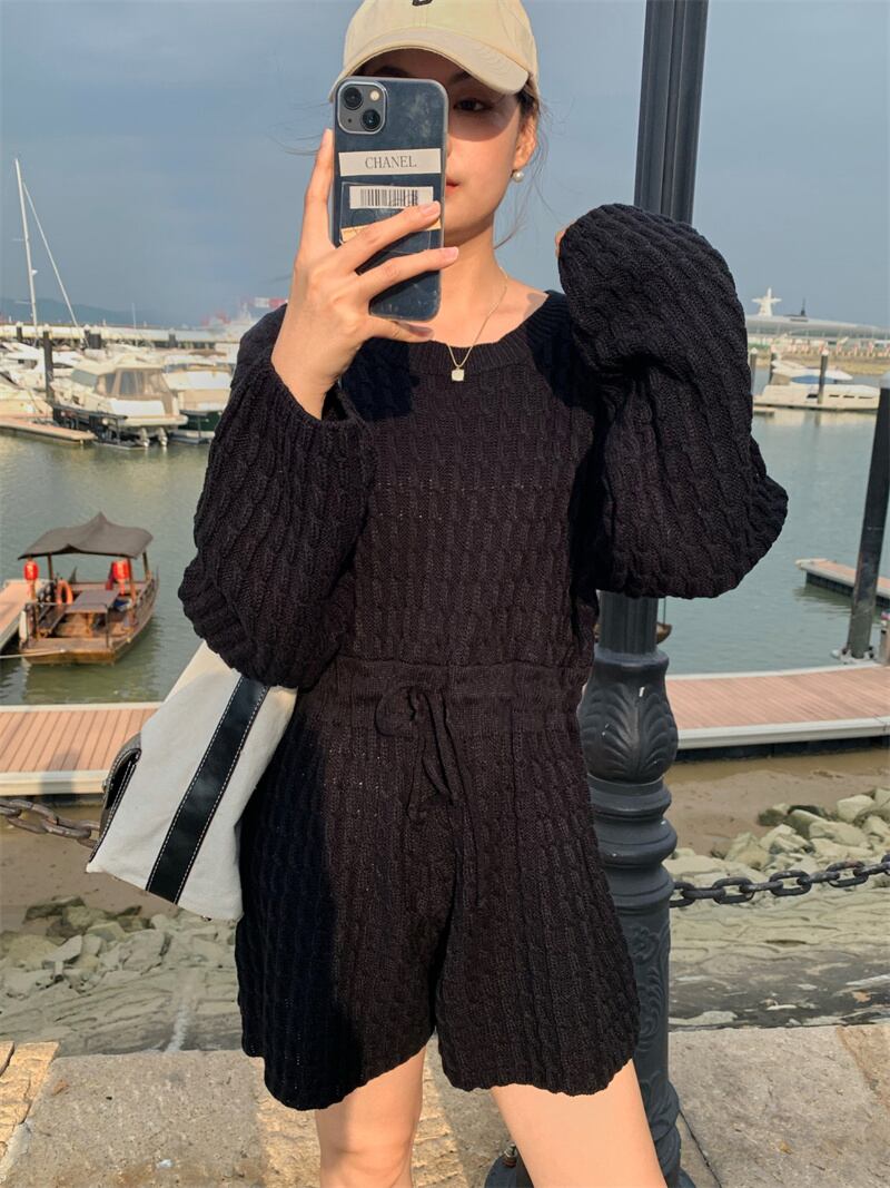2022冬INS★ファッション超気質 デザイン感 ベアトップ 透かし彫り ニット セータ