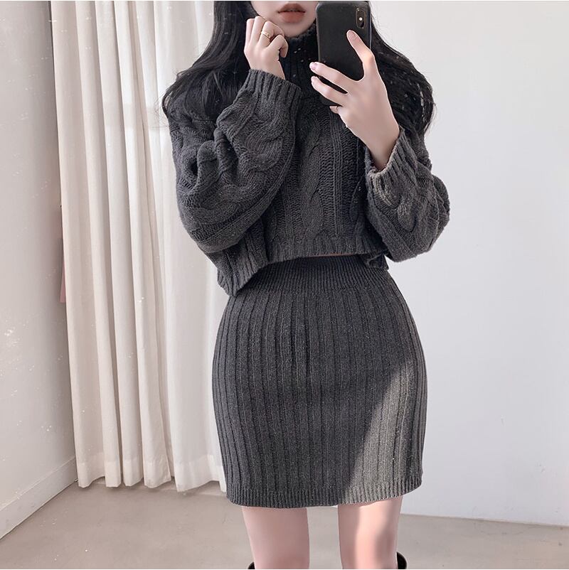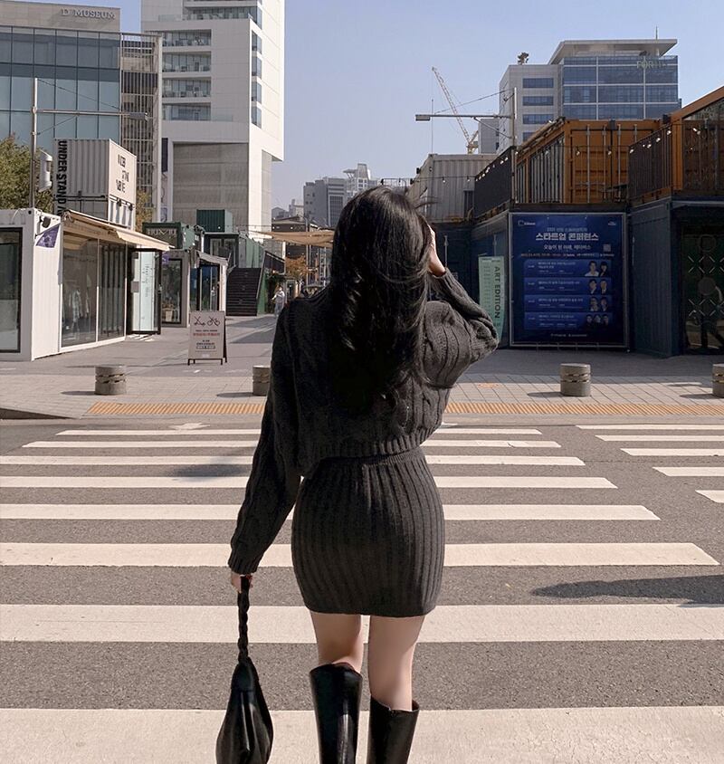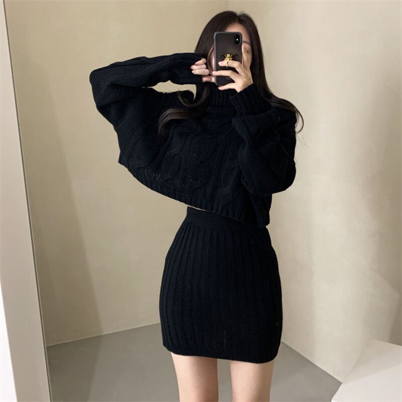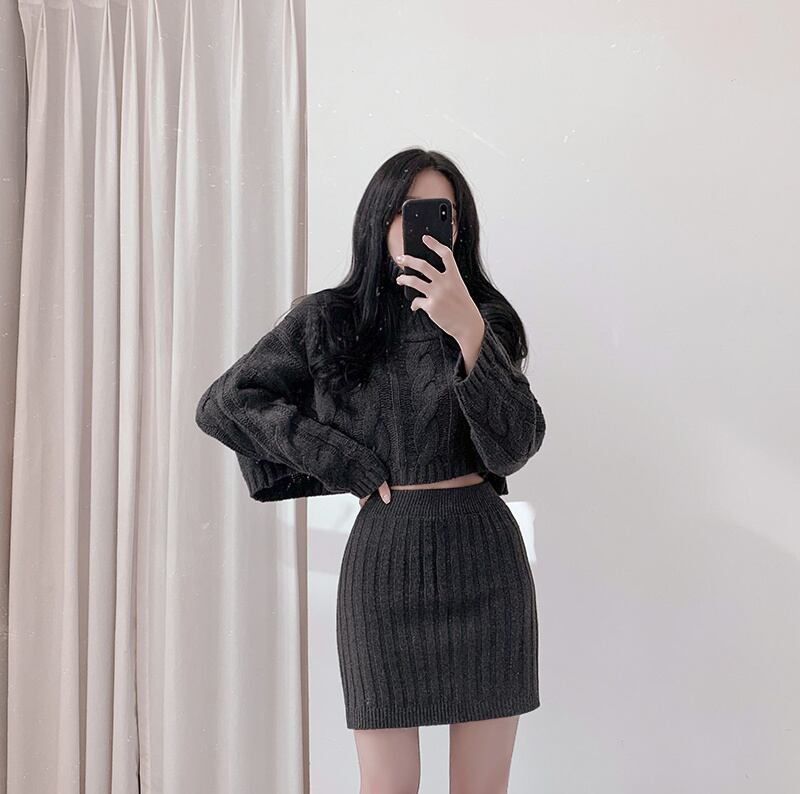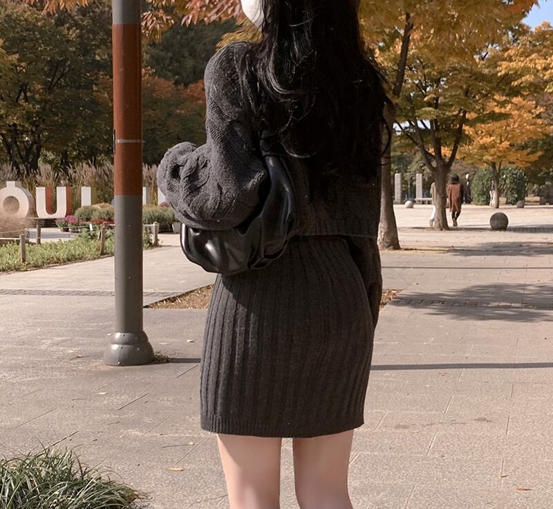 2022冬INS★ファッション レイジー風 デザイン感 ニットセーター+タイトスカート