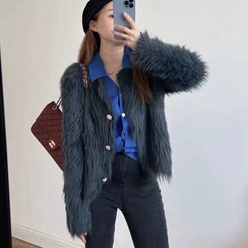 2022冬INS★ファッション超気質 ゆったり 人造毛 ラムスキン コート