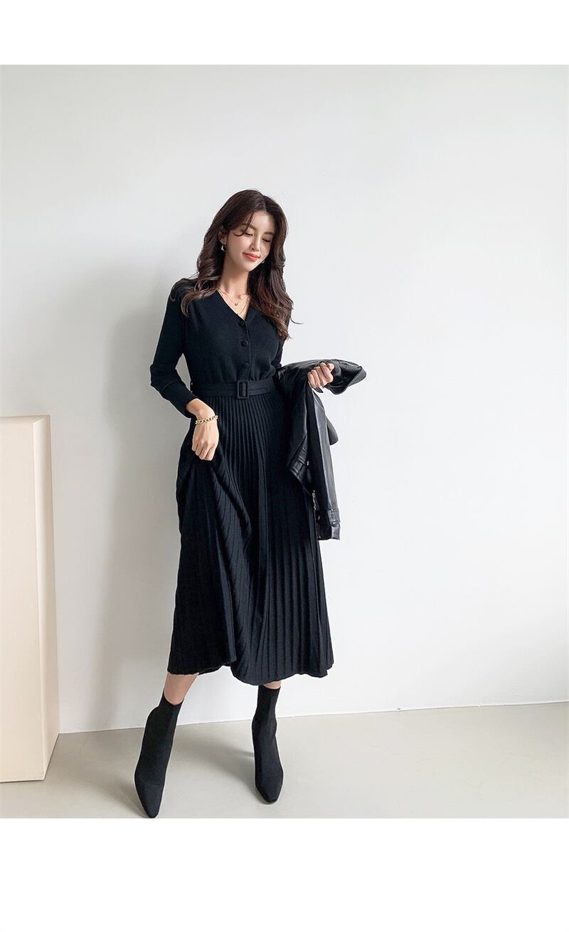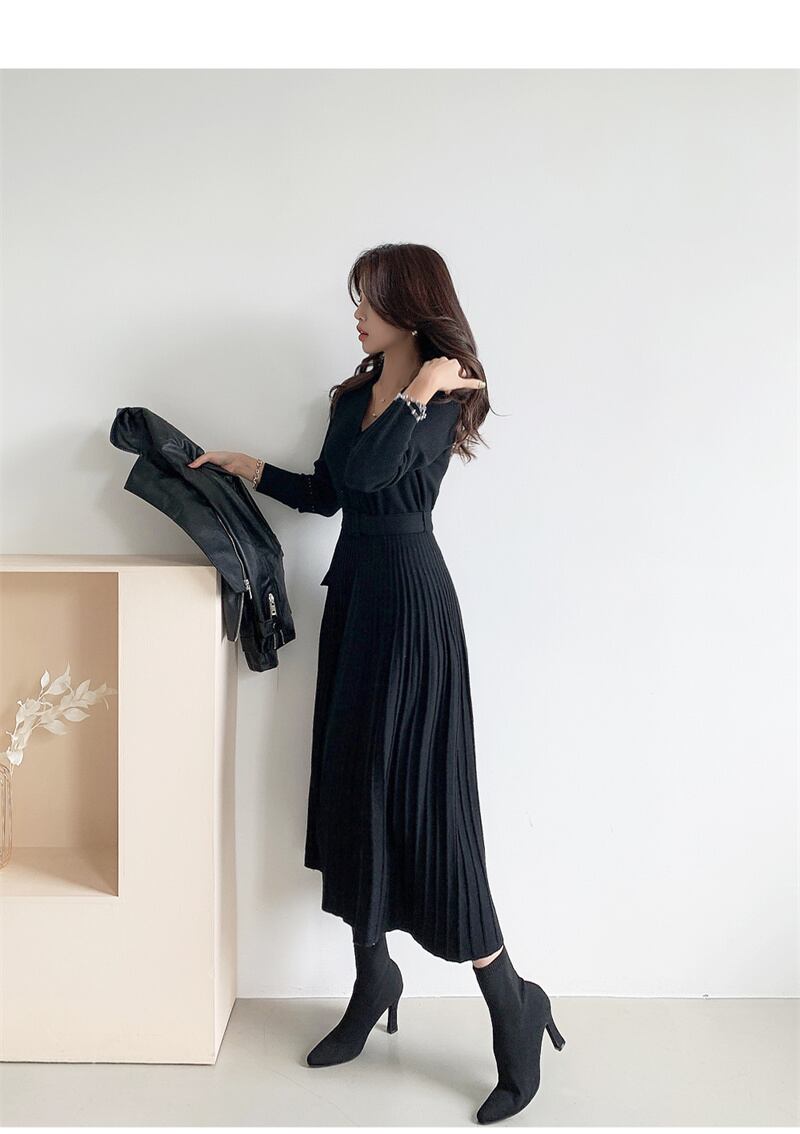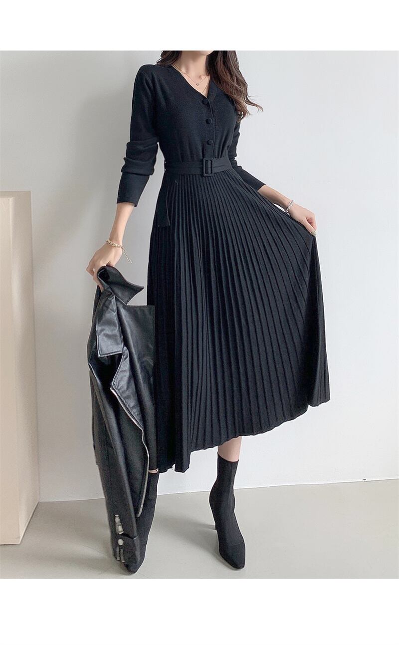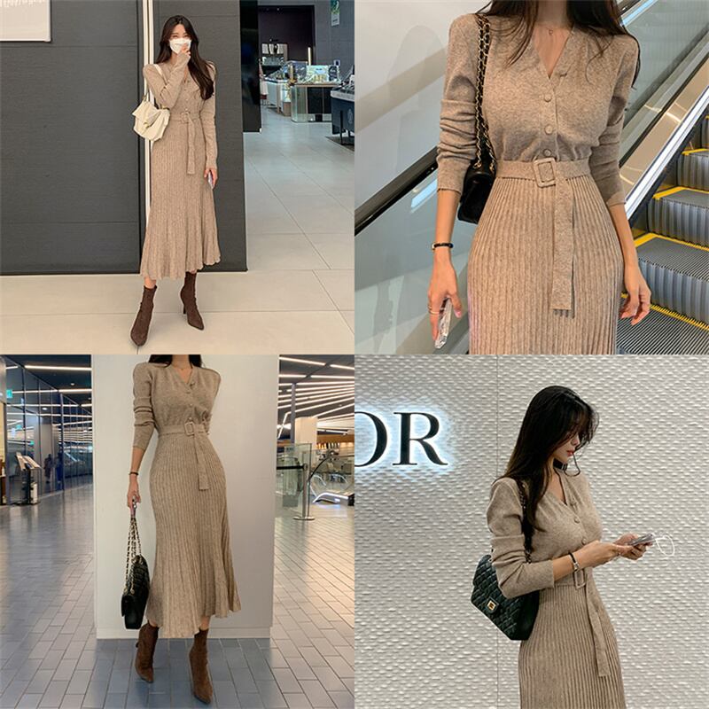 2022冬INS★ファッション 性抜群 レイジー風 シンプルベルトハイ タイトワンピース