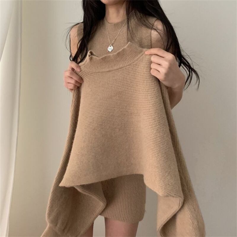 2022冬INS★ファッション レイジー風 デザイン感 ニットセーター+スカート