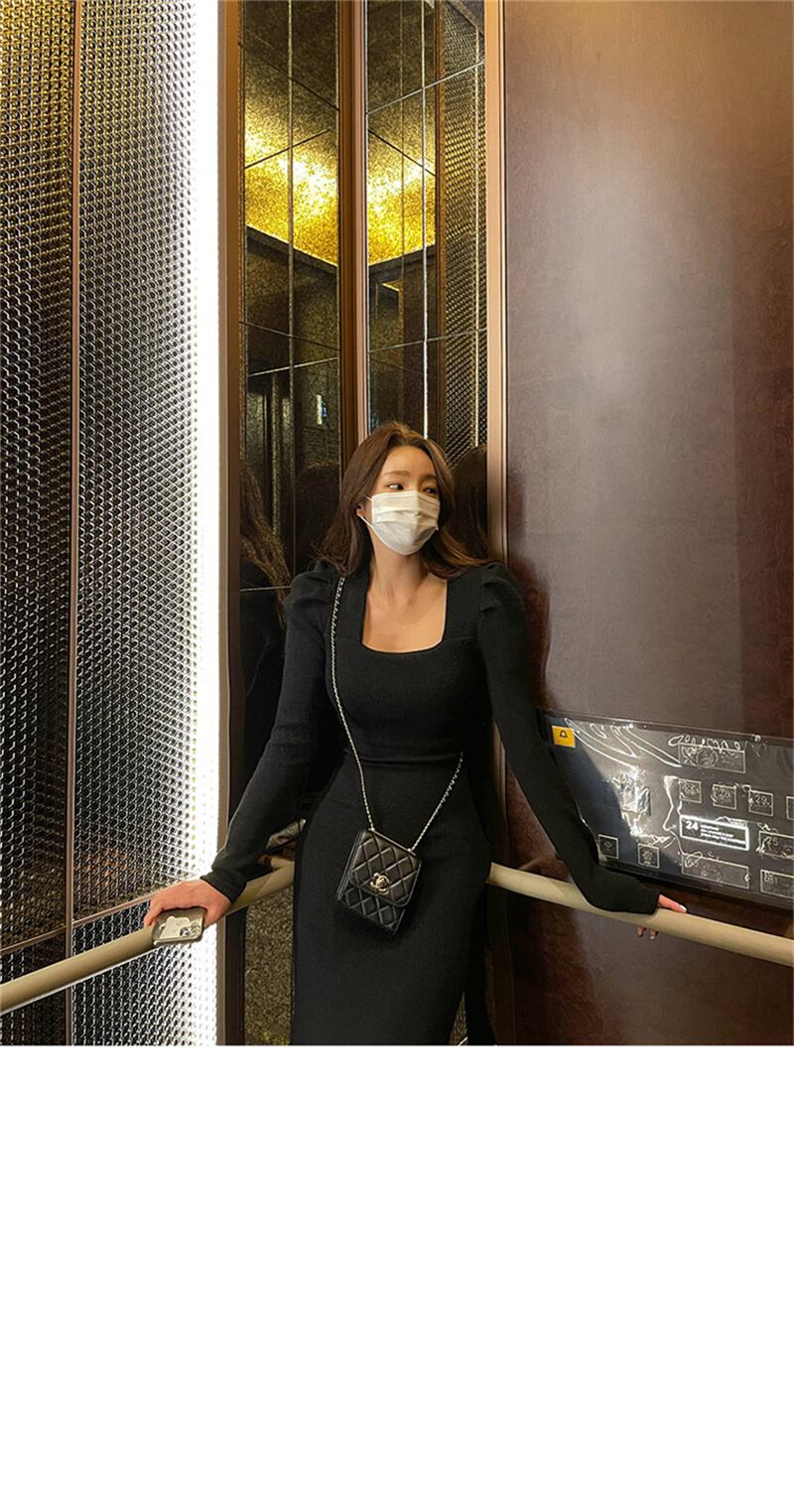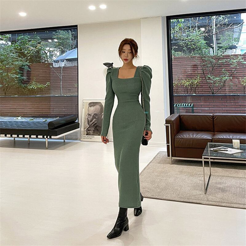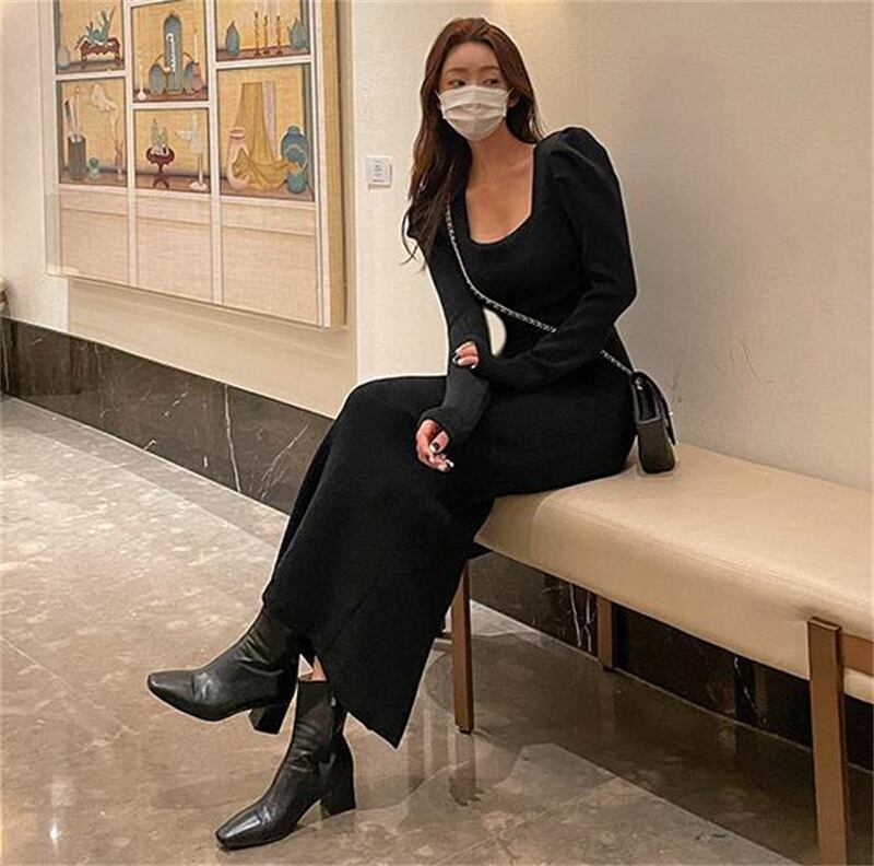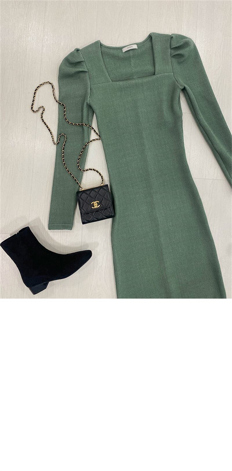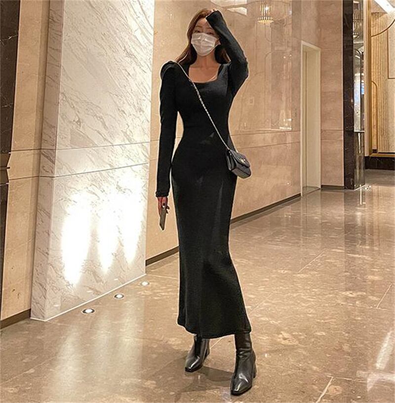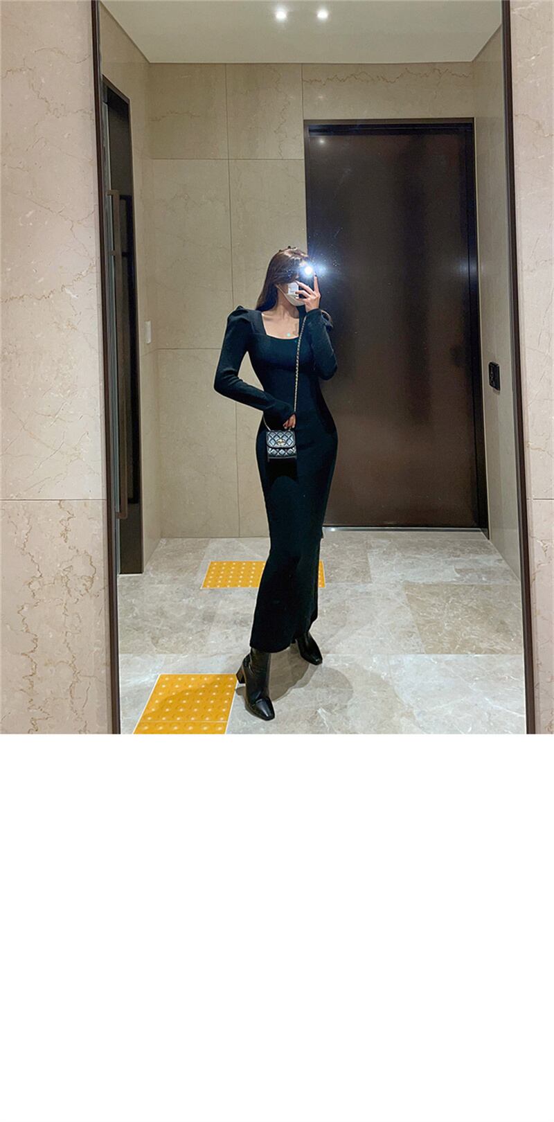 2022冬INS★ファッション レイジー風 スクエアネック ニット タイトワンピース