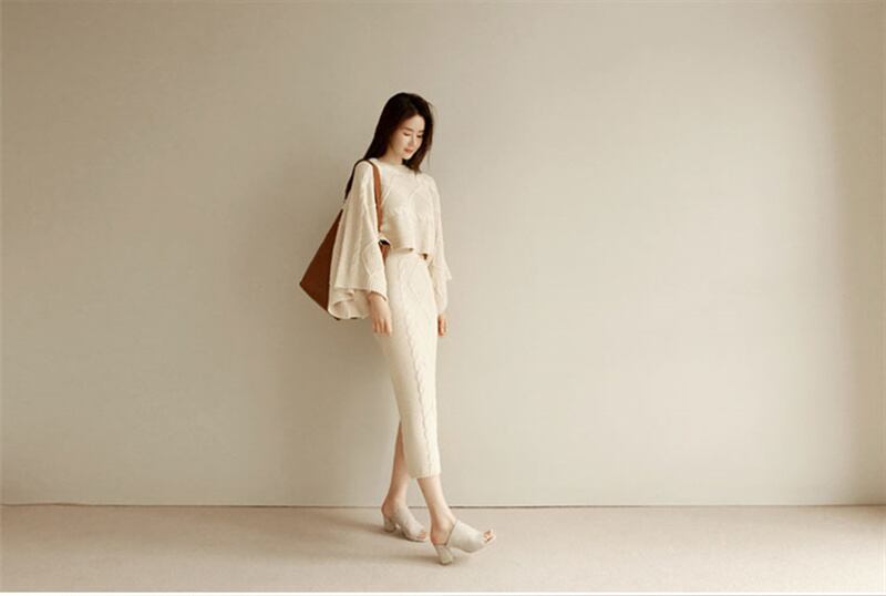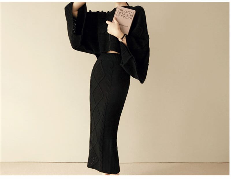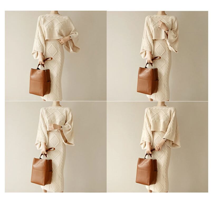 2022冬INS★ファッション レイジー風 ゆったり ドルマンスリーブ ニットウェア タイトスカート