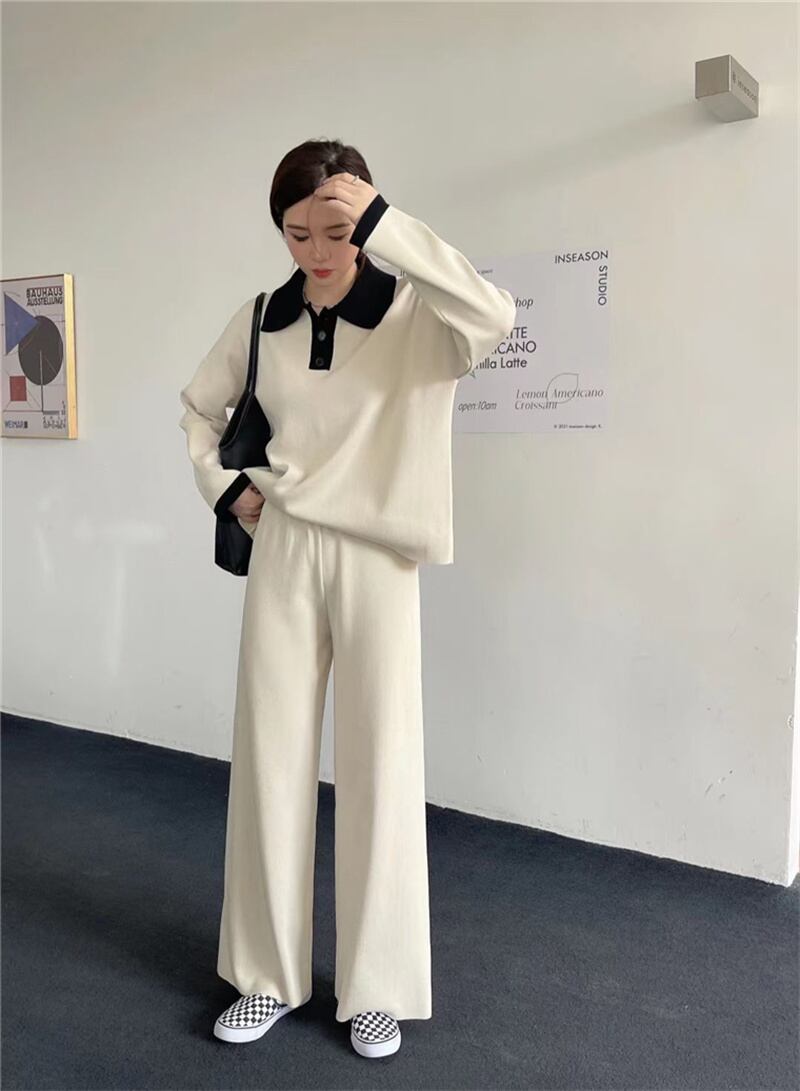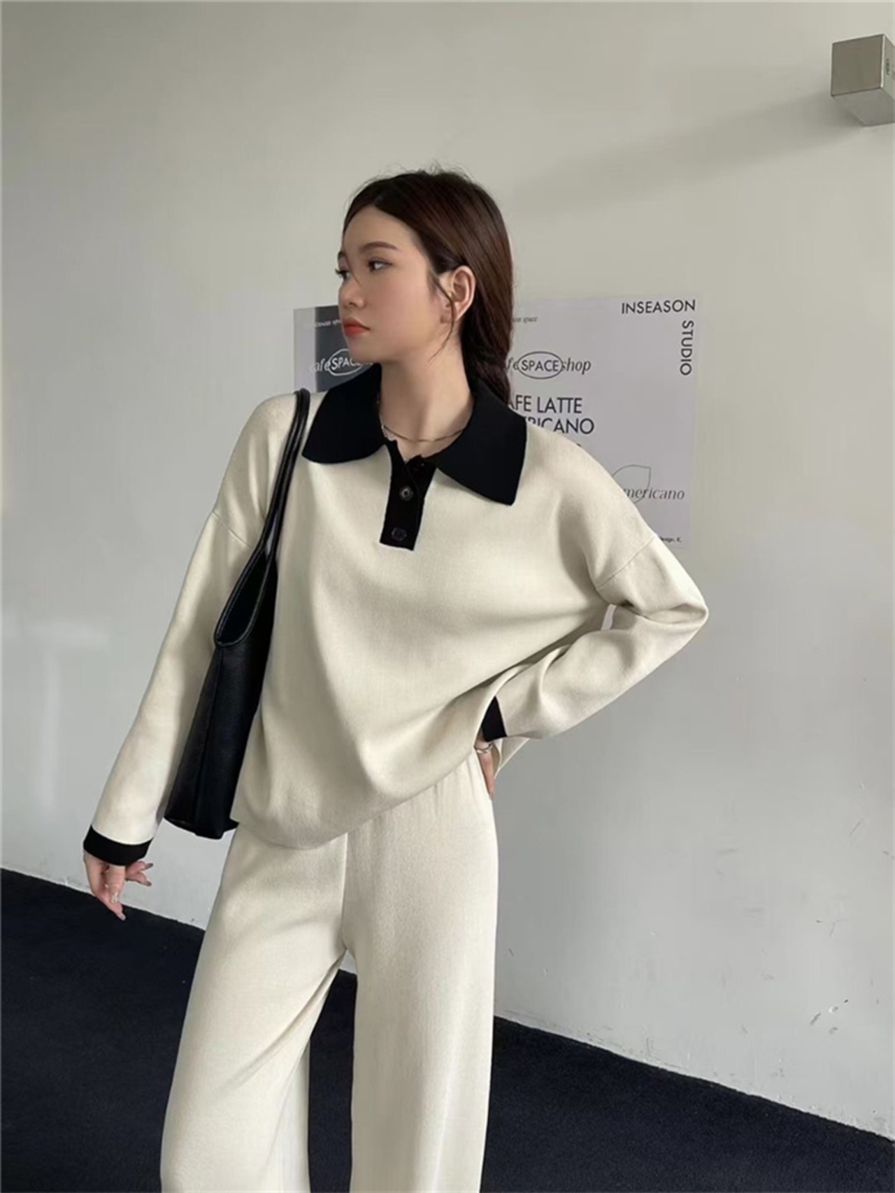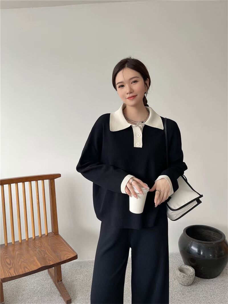 INS 秋冬新作 ins超人気 韓国系 カジュアル シンプル 長袖 無地 ポロシャツ パンツ