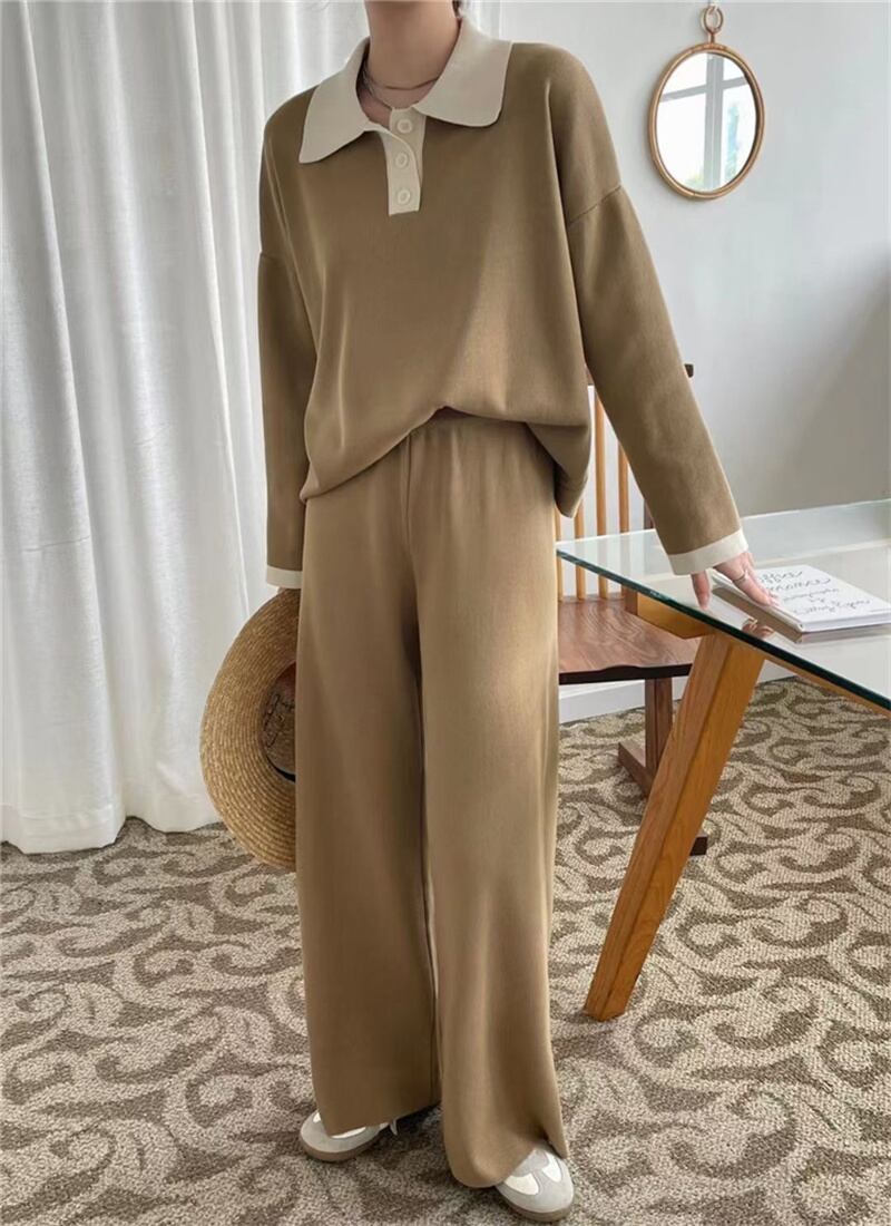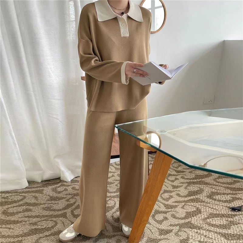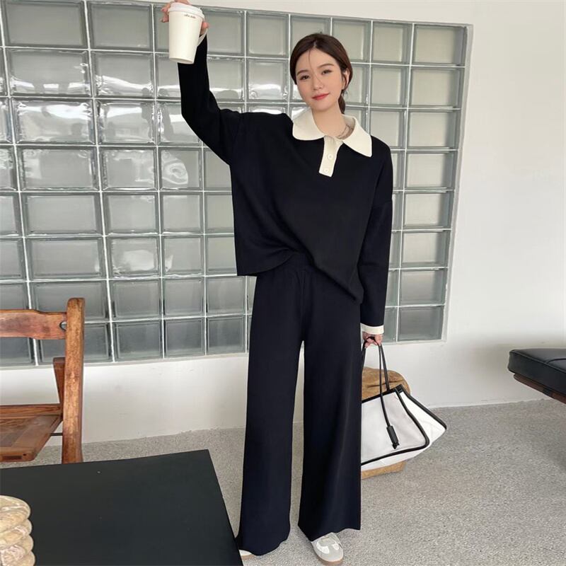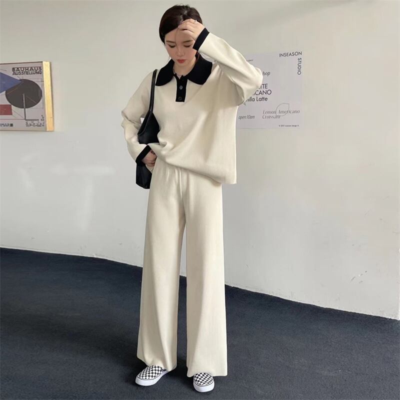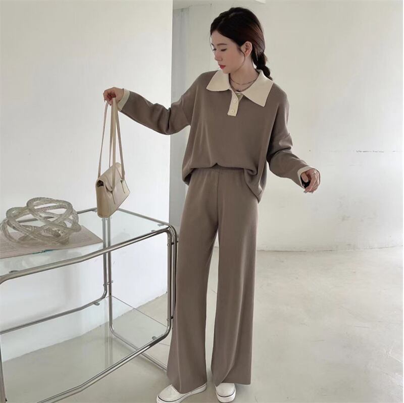 INS 秋冬新作 ins超人気 韓国系 カジュアル シンプル 長袖 無地 ポロシャツ パンツ