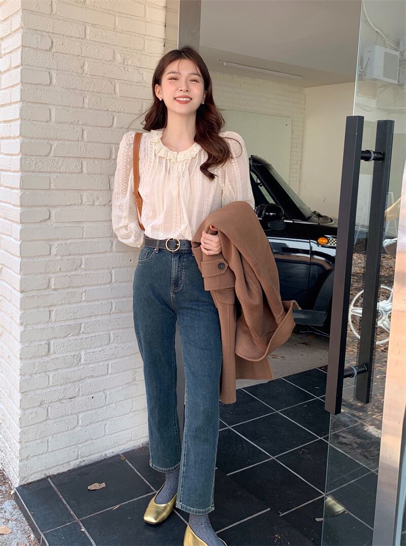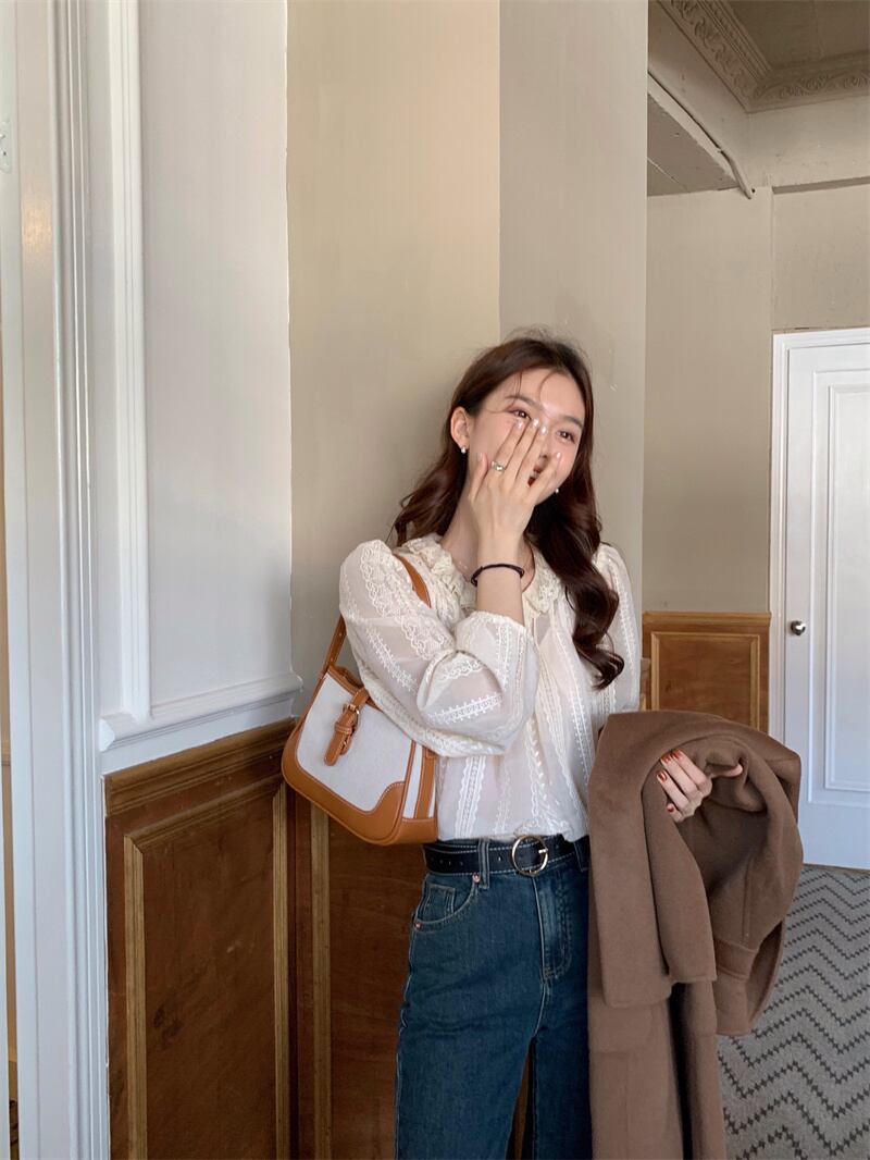 INS 秋新作 ファッション レトロ 気質 シンプル レース飾り シャツ/ブラウス