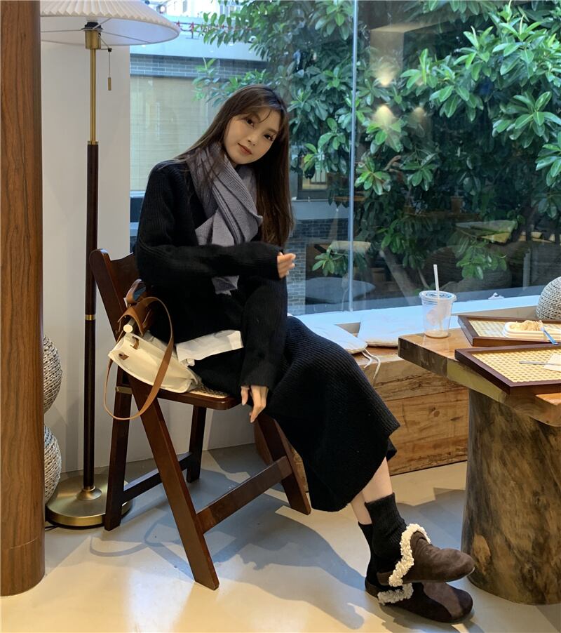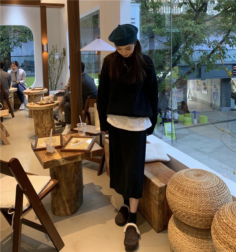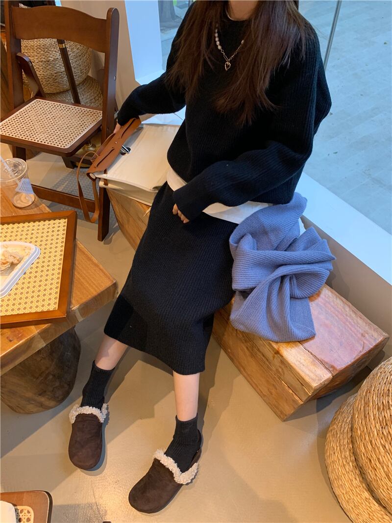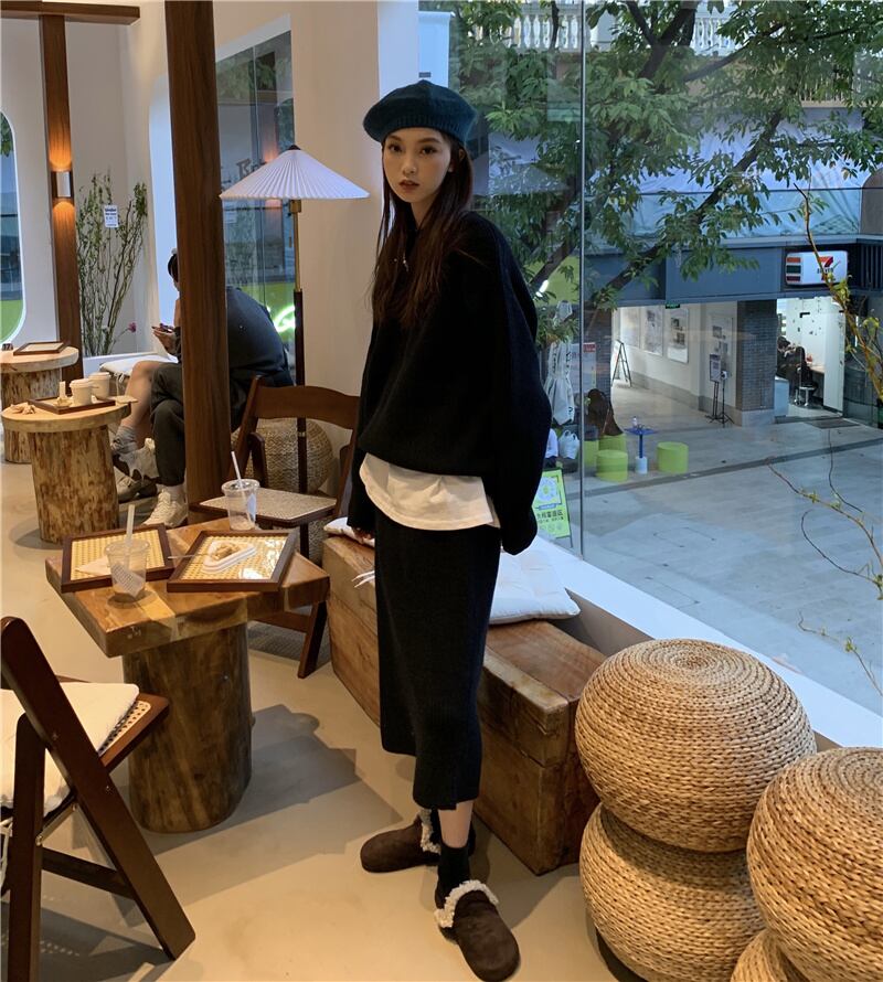INS 秋冬新作 シンプル デザイン性抜群 無地 セーター セミロングスカート