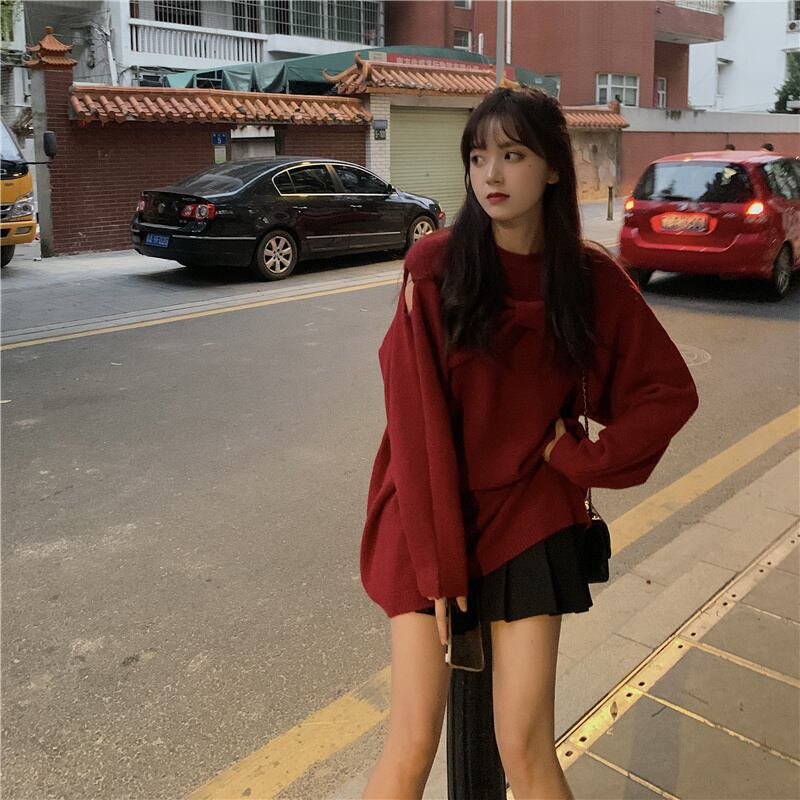 2022冬INS★ファッション超気質 ゆったり オフショルダー ニットウェア セーター