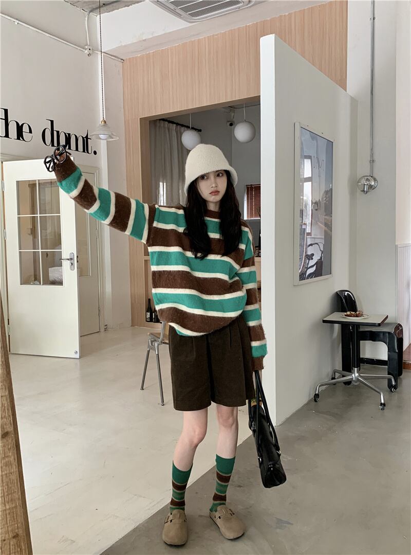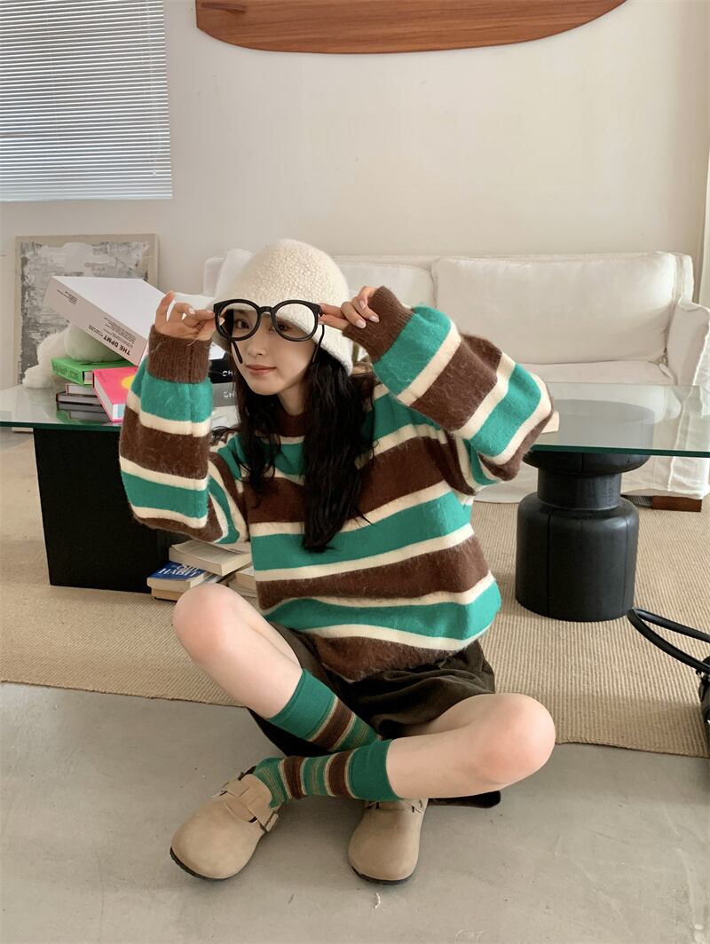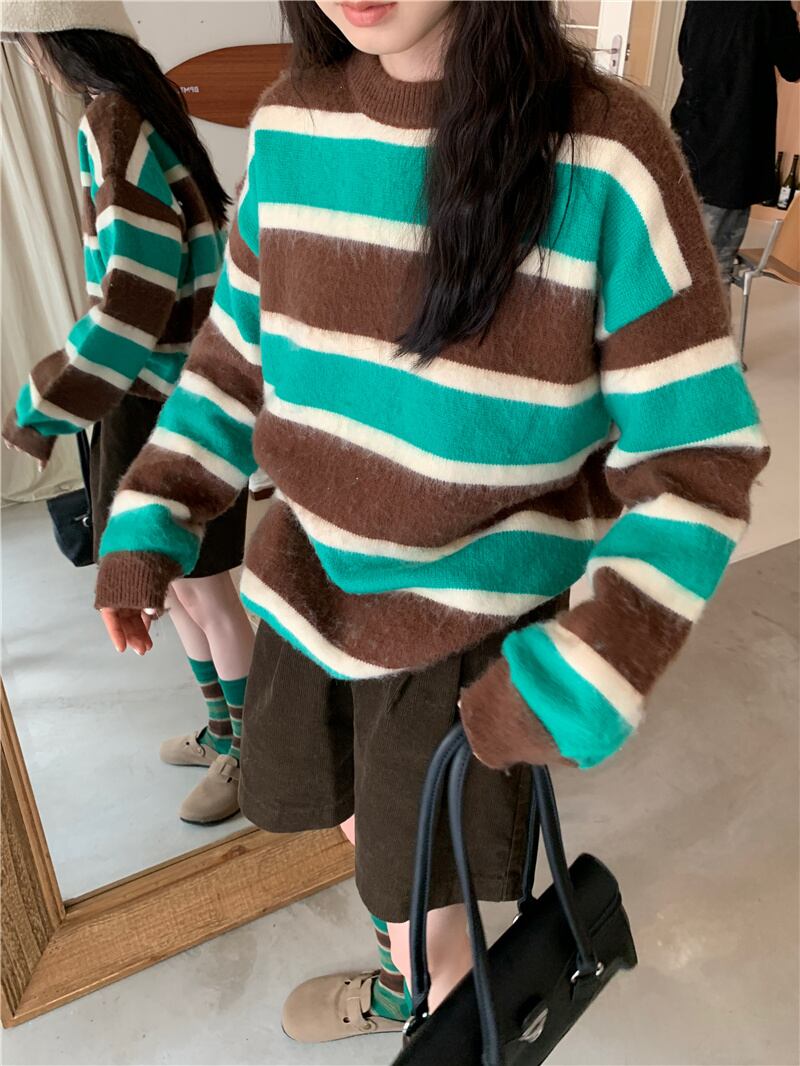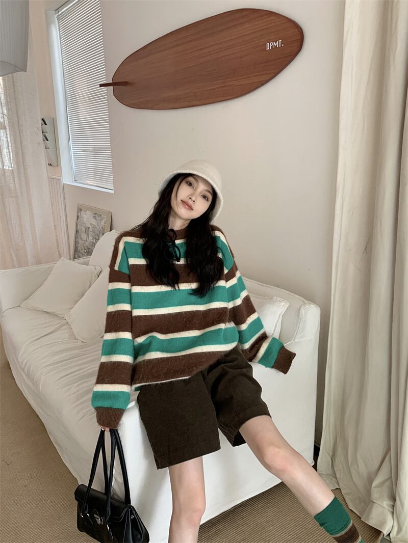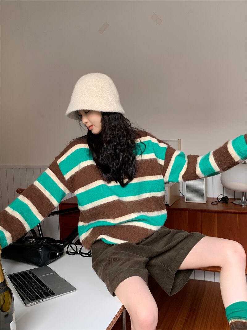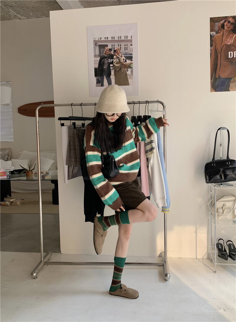 2022冬INS★ファッション超気質 ストライプ 柄 ニットウェア セーター