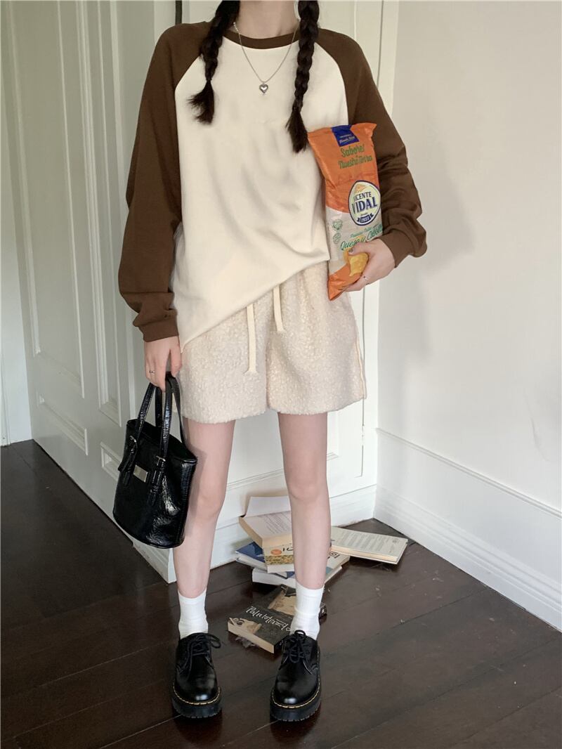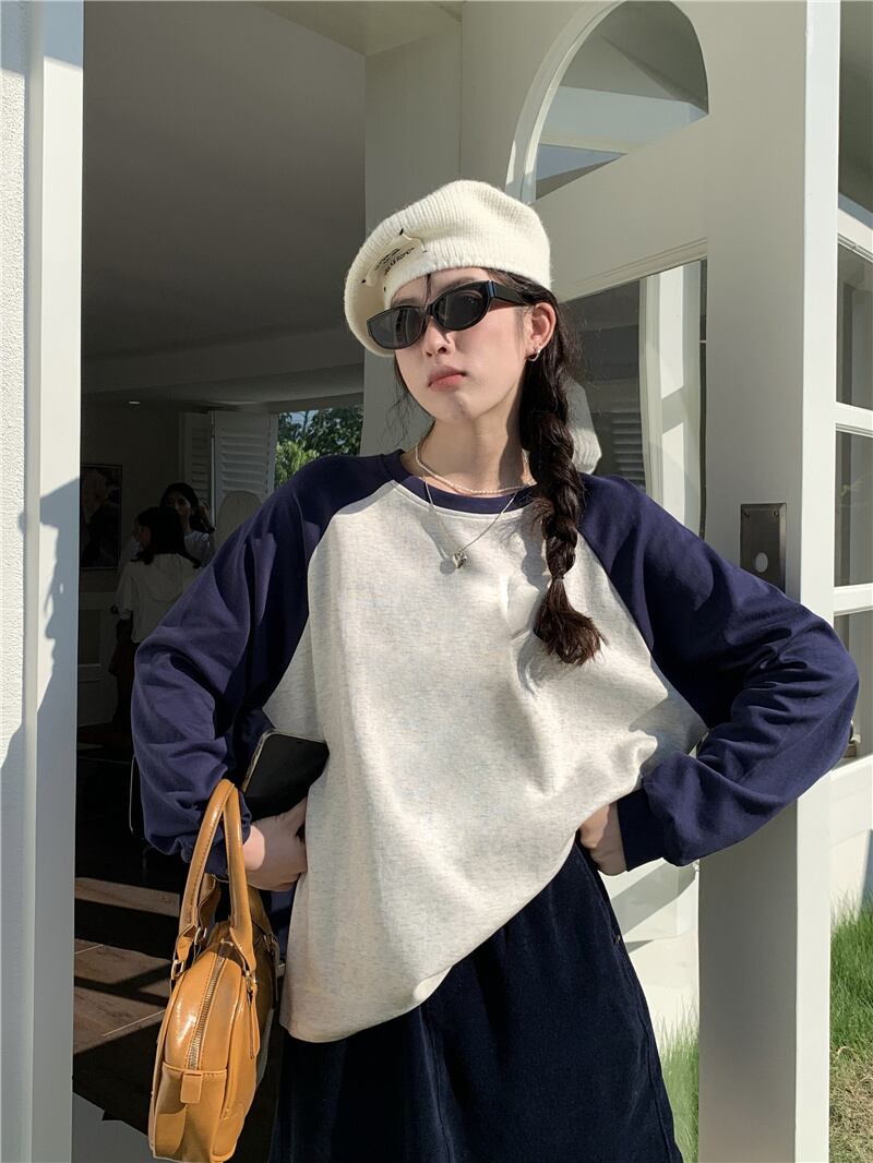 INS 秋冬新作 ins超人気 韓国系 デザイン性抜群 配色 切り替え トレーナー