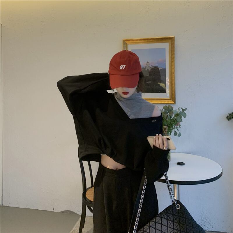 2022冬INS★ファッション超気質 スウィート スプライス拼接 Tシャツ トップス
