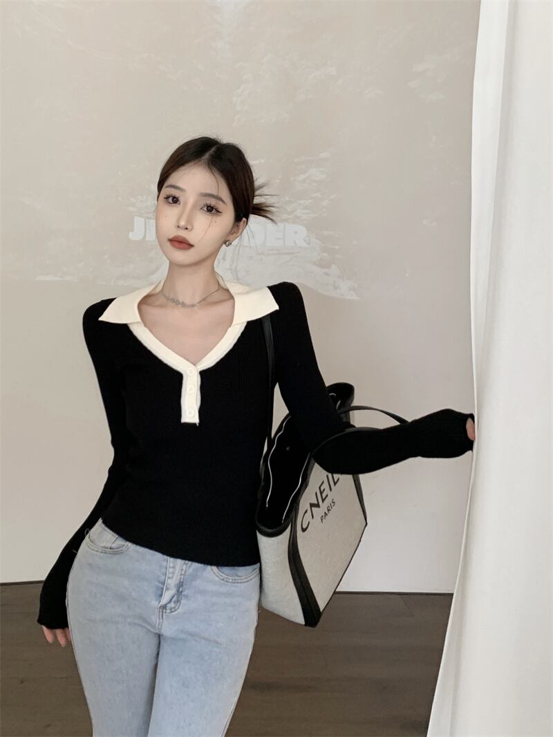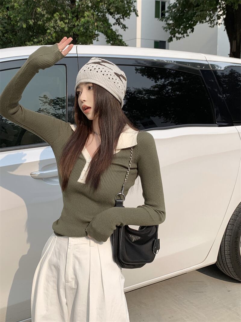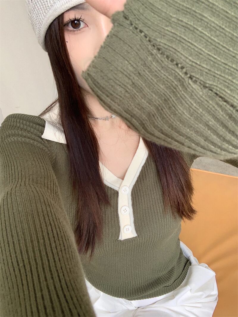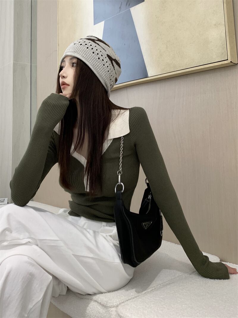 2022冬INS★ファッション超気質 韓国風 レイジー風 3色 トップス ニット 長袖Tシャツ