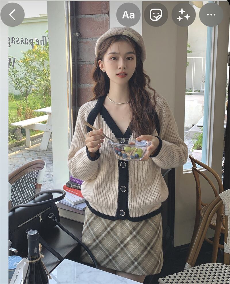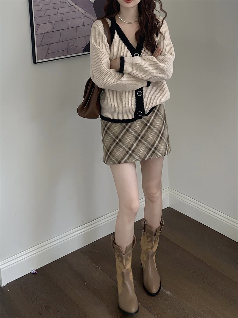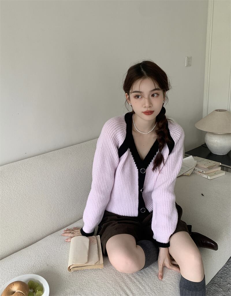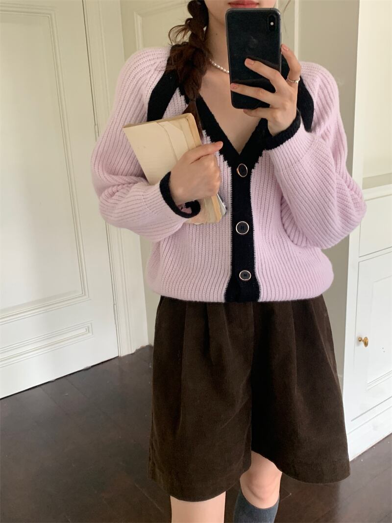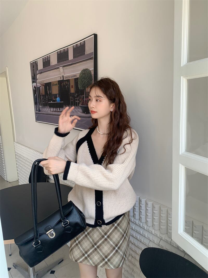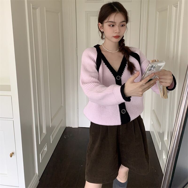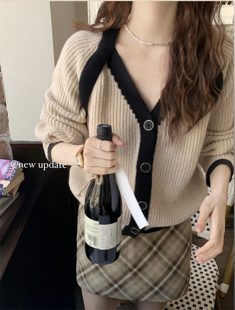 INS 秋冬新作 超人気ゆったり 配色 韓国系 優しい印象 Vネック カーディガン