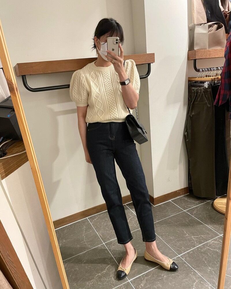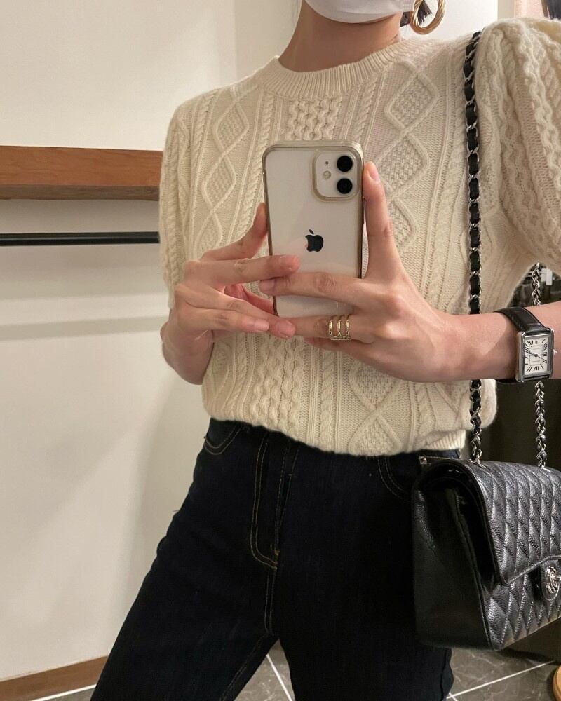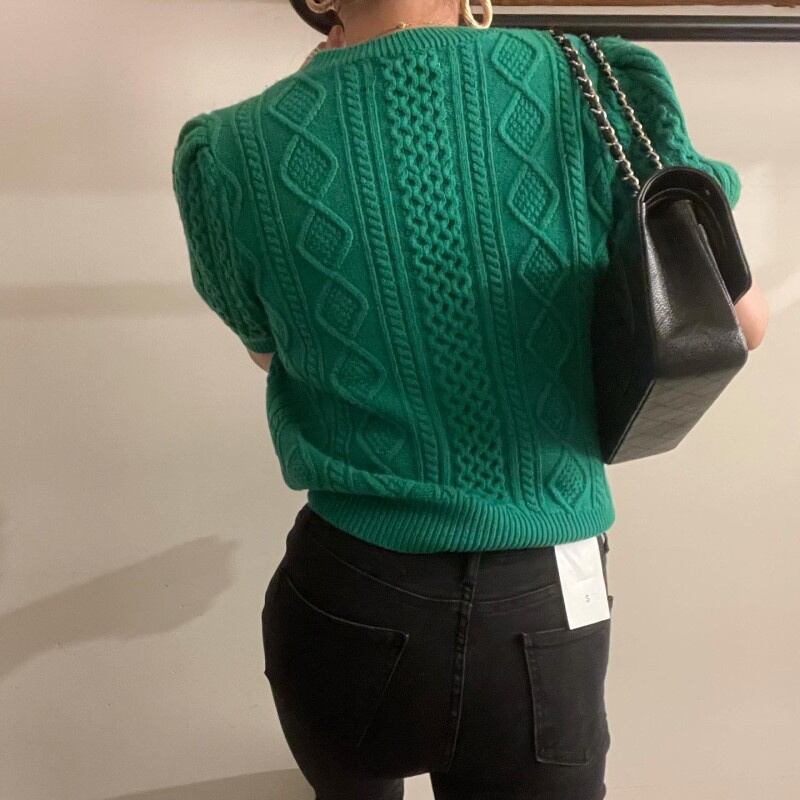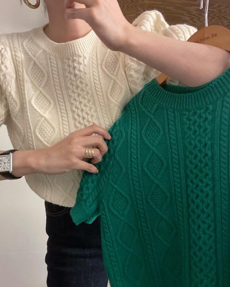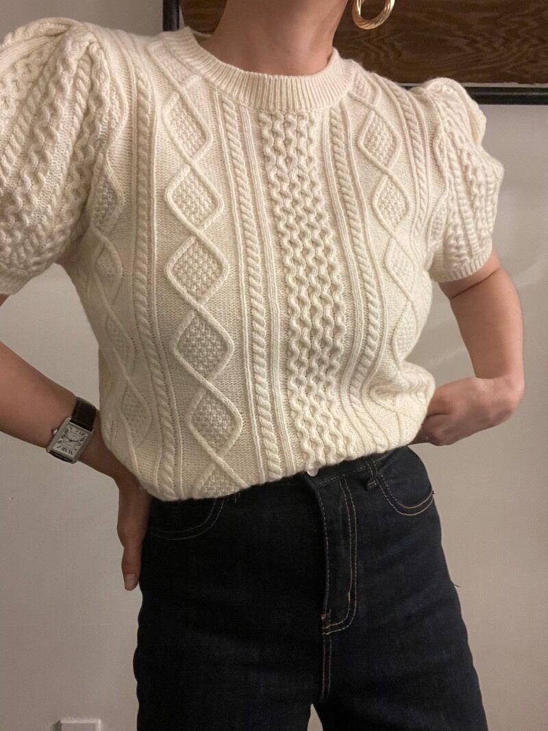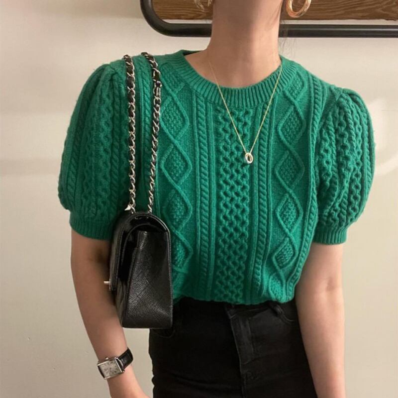 INS 秋冬新作 カジュアル レトロ ニット生地 ラウンドネック プルオーバー 短袖 セーター/カットソー