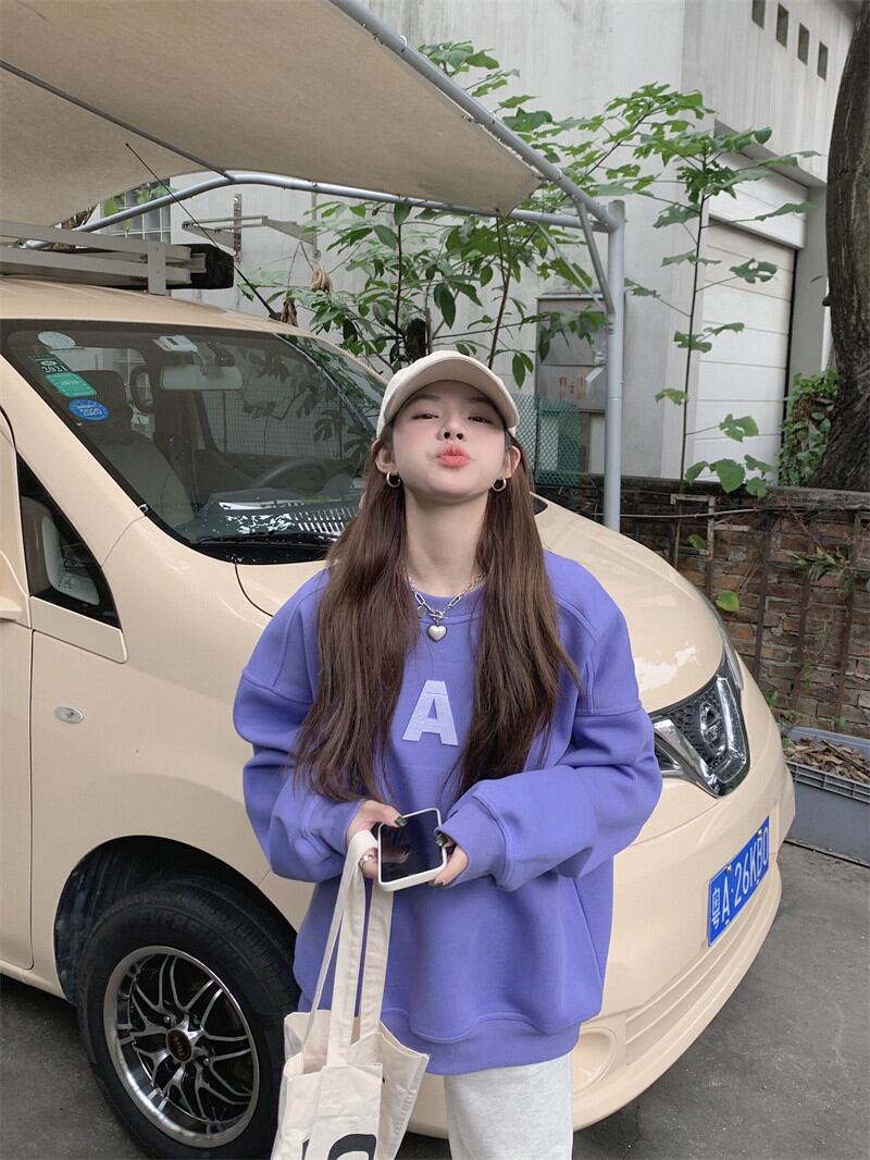 INS 秋新作 ゆったり 長袖 プリント アルファベット 裏起毛 プルオーバー デコレーション トレーナー