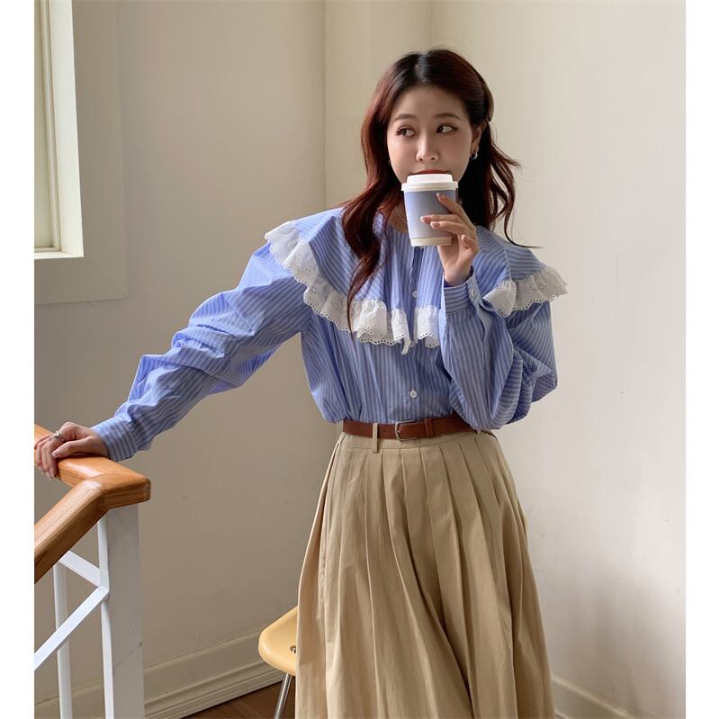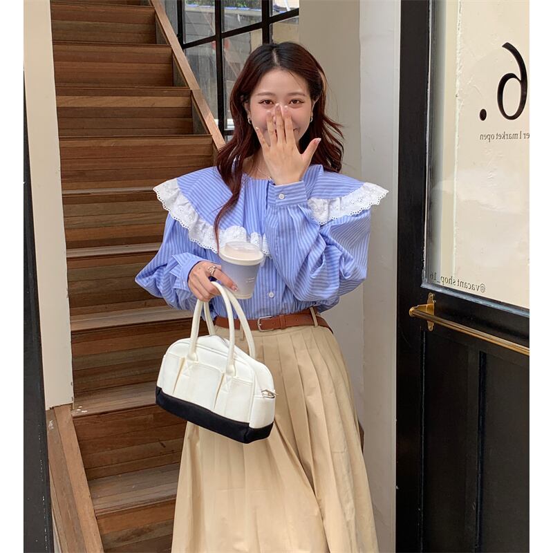 INS 秋新作 ファッション レトロ 気質 シンプル ストライプ柄 シングルブレスト シャツ/ブラウス