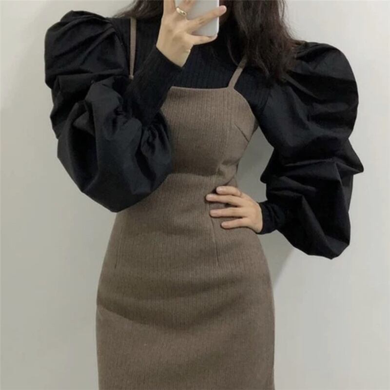 INS 秋新作 カジュアル レトロ ニット生地 スクエアネック プルオーバー セーター/カットソー