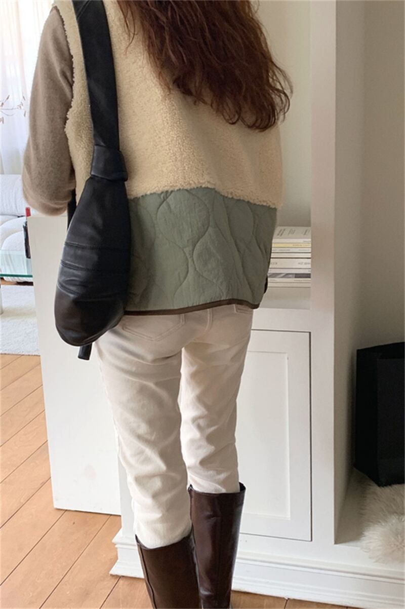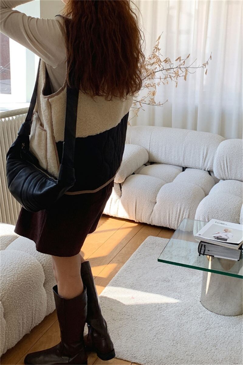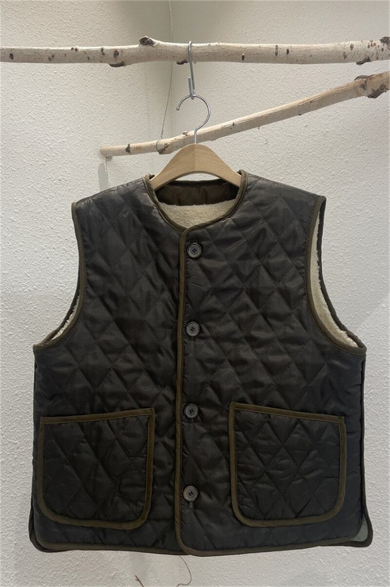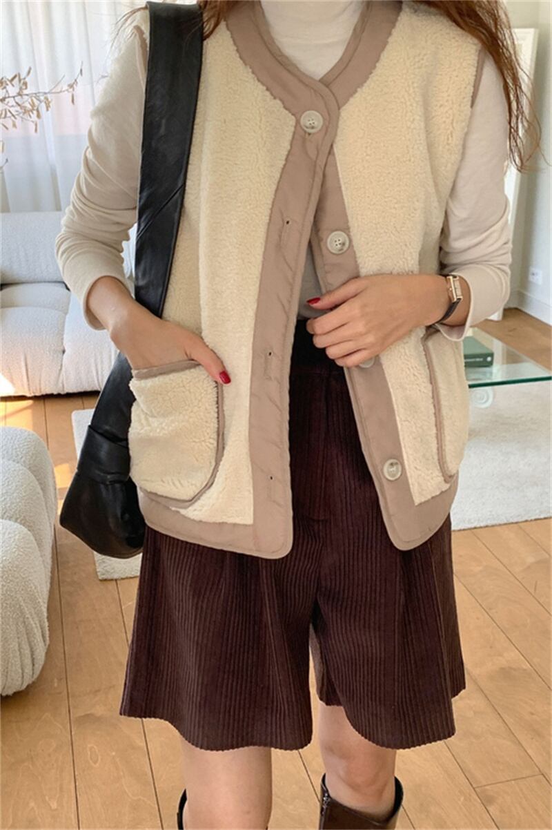 INS 秋新作 レトロ 韓国系 シングルブレスト 配色 両面着用可 ラムウールベスト