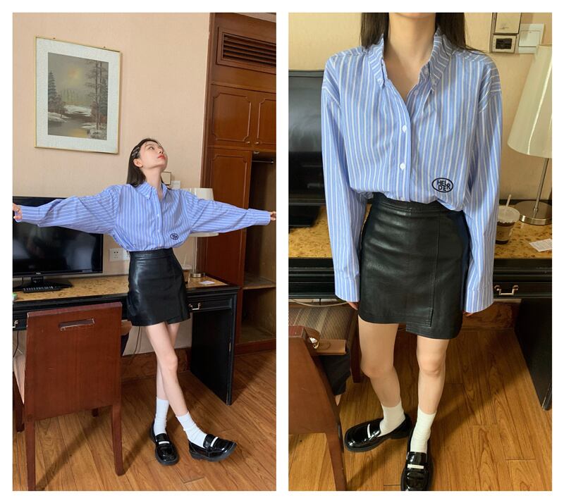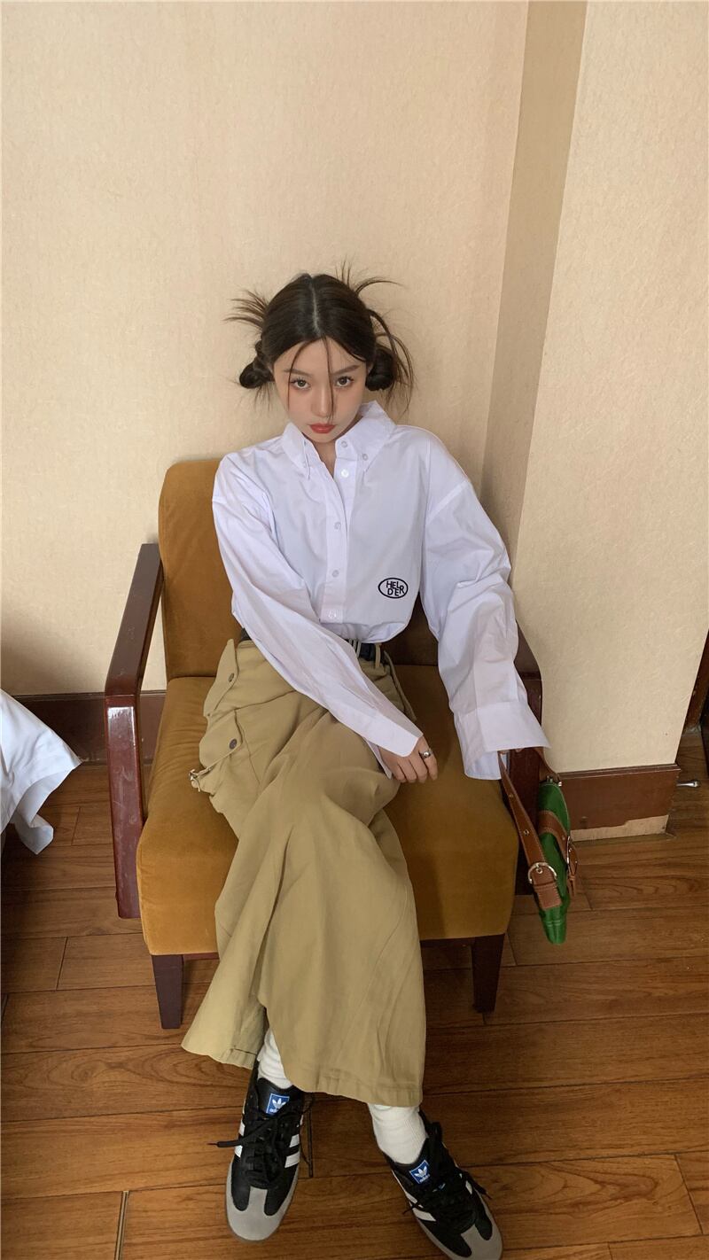 INS 秋新作 レトロ 長袖 シングルブレスト チエック柄 刺繍 シャツ/ブラウス