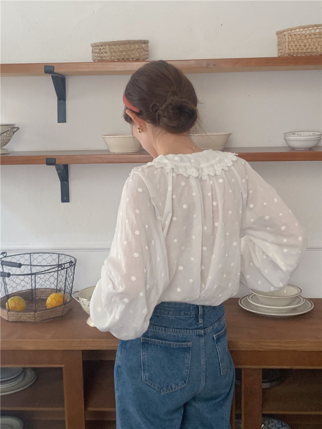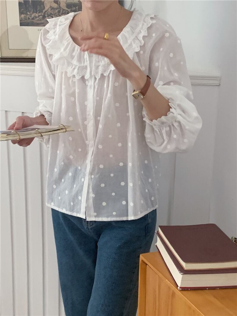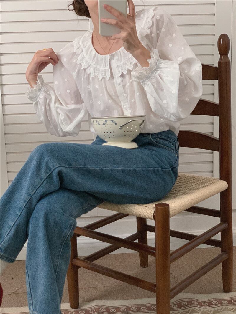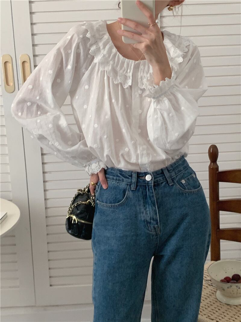 INS 秋新作 レトロ 長袖 シングルブレスト 刺繍 シャツ/ブラウス