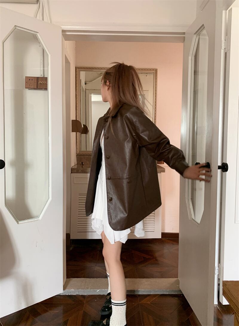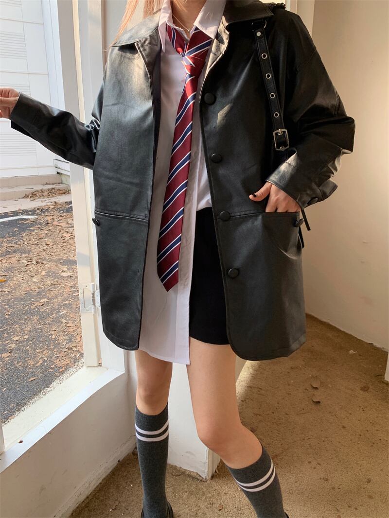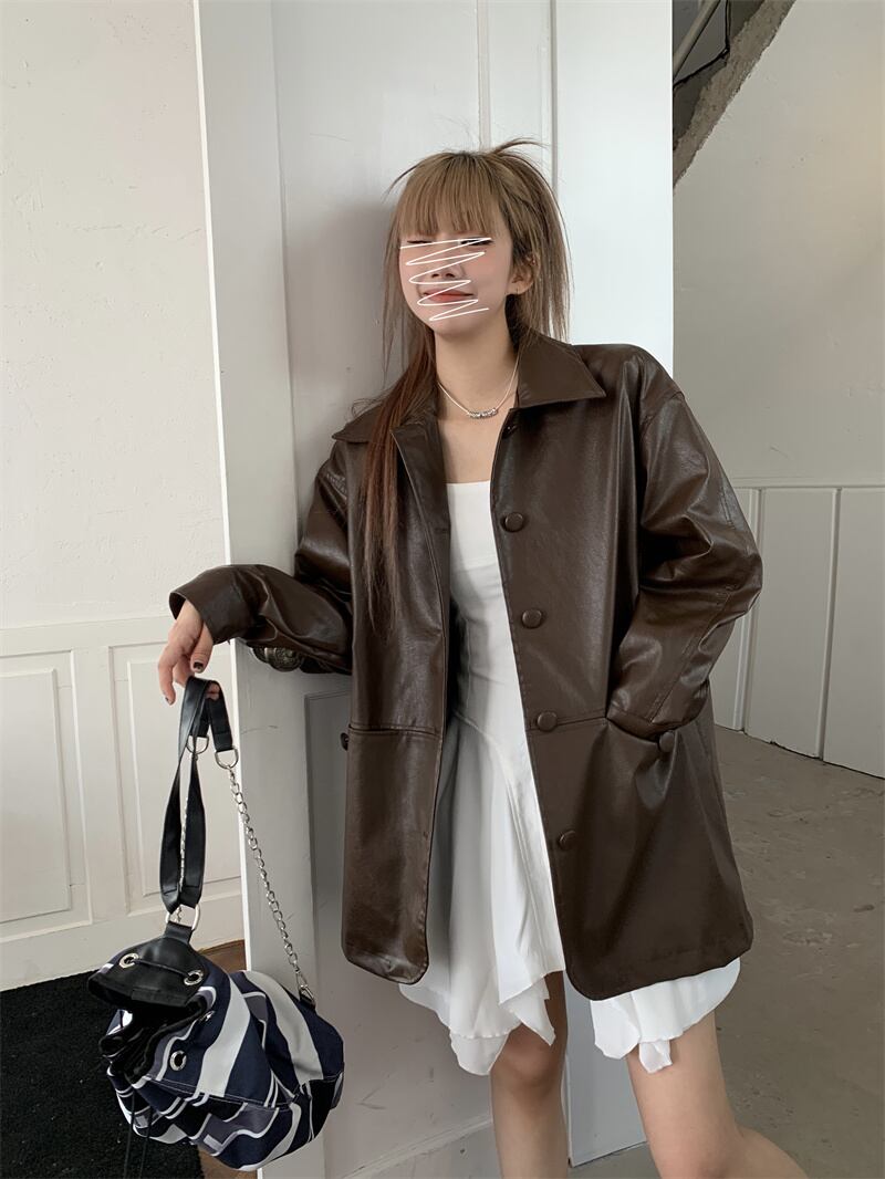 INS 秋新作 超人気 韓国系ファッション レザー コート 長袖 シャツ