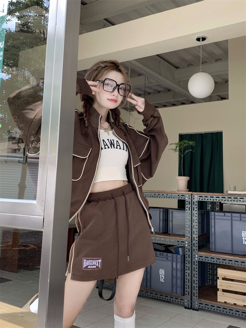 INS 秋新作 超人気 韓国系ファッション レトロ パーカー+スカート