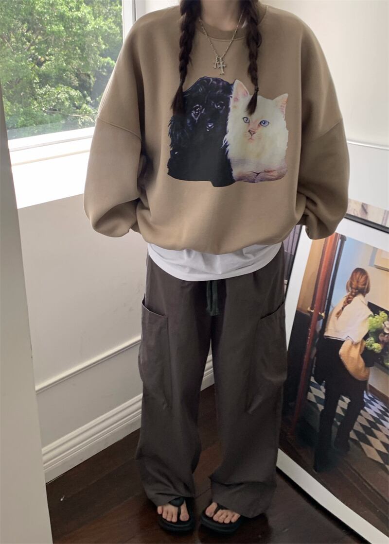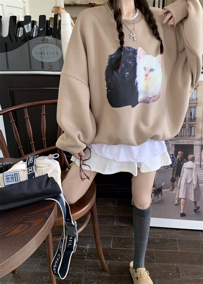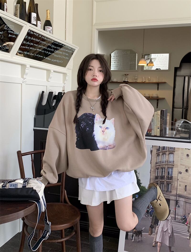 INS 秋新作 超人気 韓国系ファッション プリント ネコ パーカー トップス