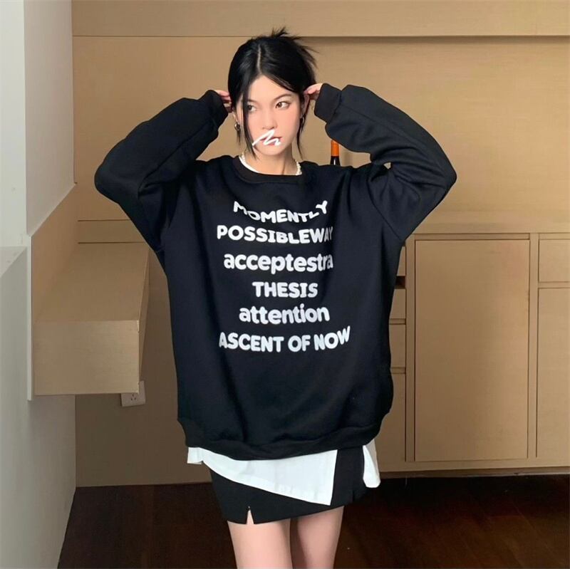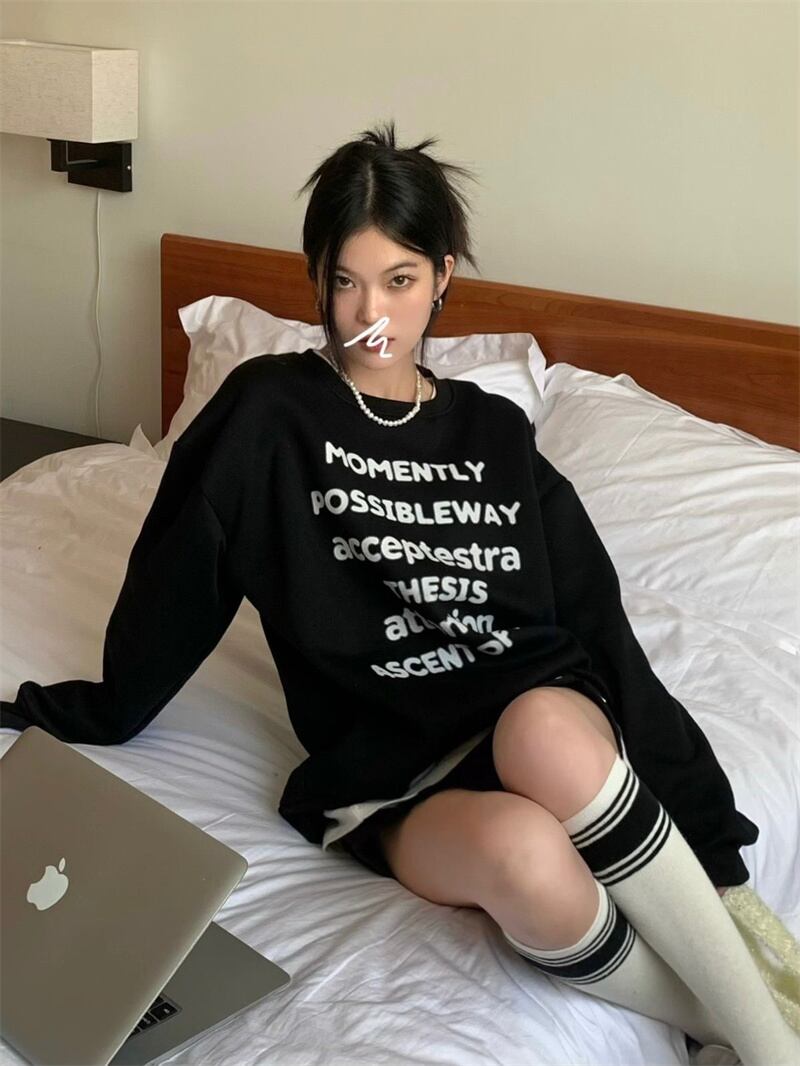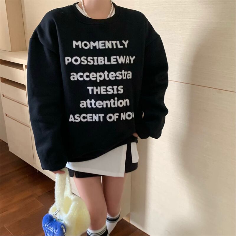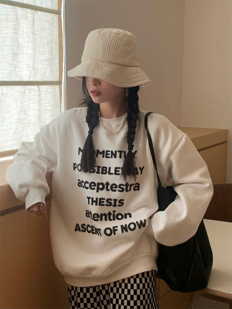 INS 秋新作 超人気 韓国系 シンプル アルファベット ラウンドネック 長袖 Tシャツ