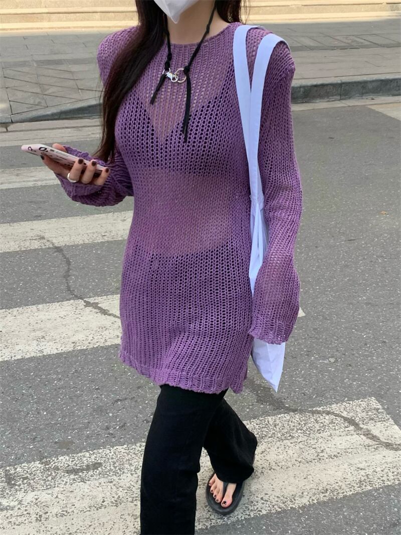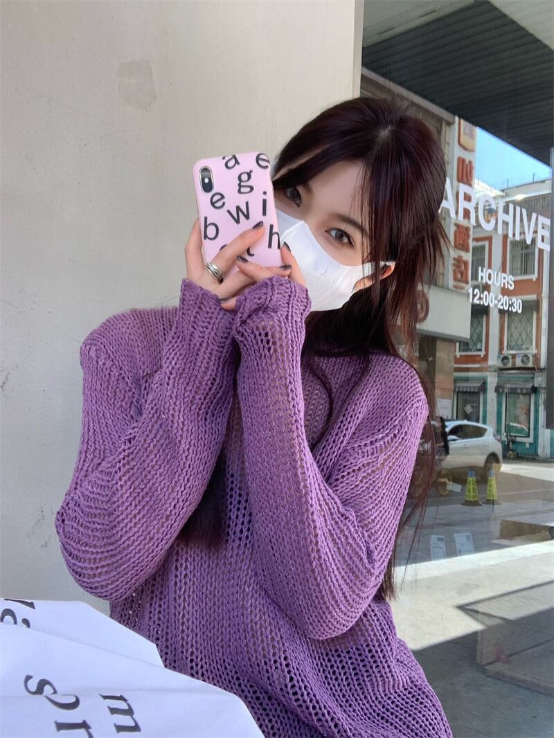 INS 秋新作 超人気 韓国系 シンプル 透かし彫り ラウンドネック 長袖 セーター