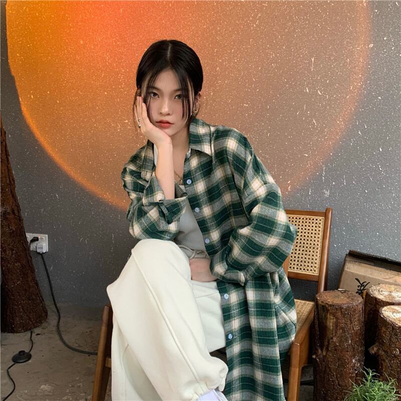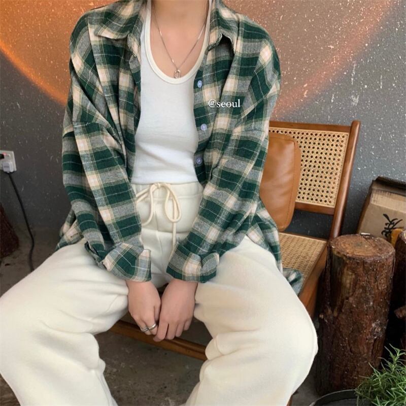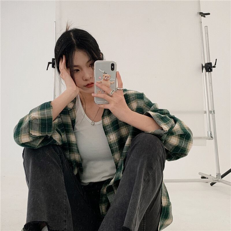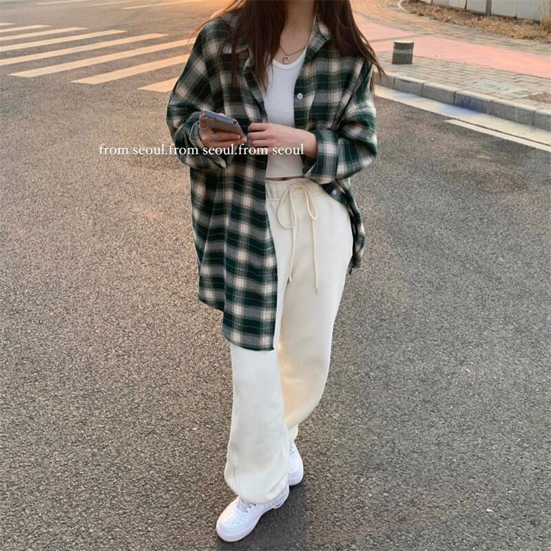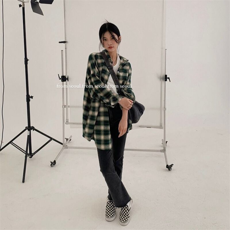 INS 秋新作 超人気 韓国系 シンプル ゆったり カジュアル チェック シャツ