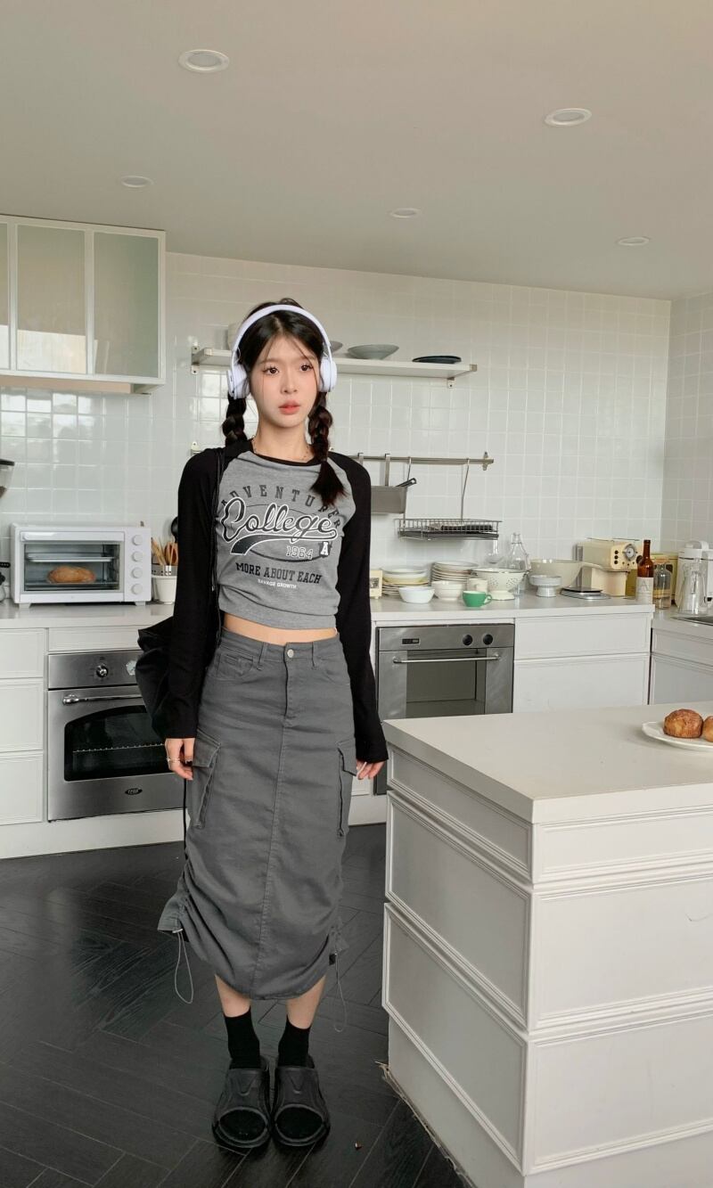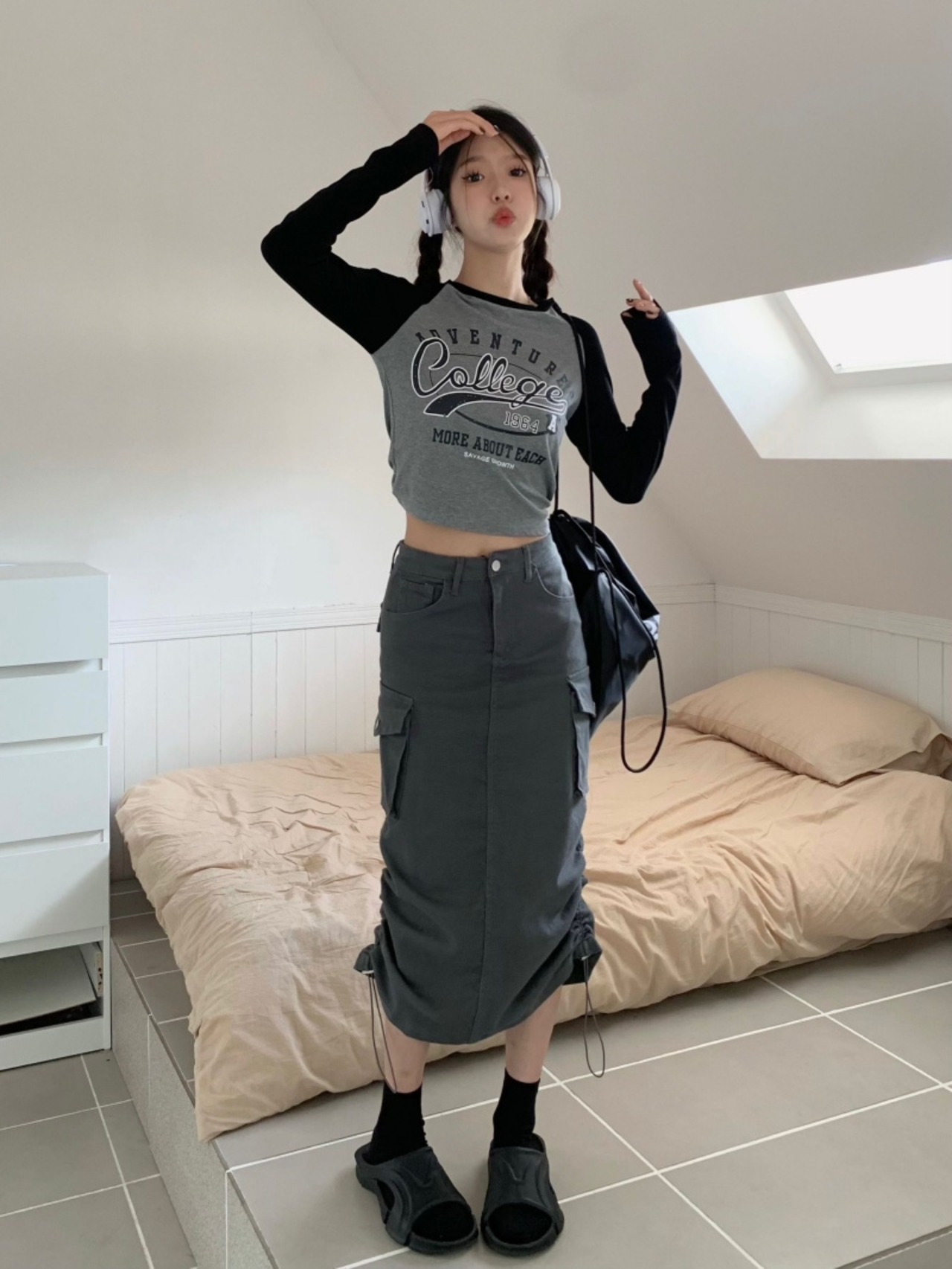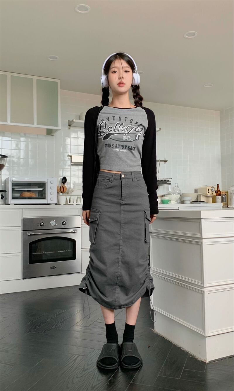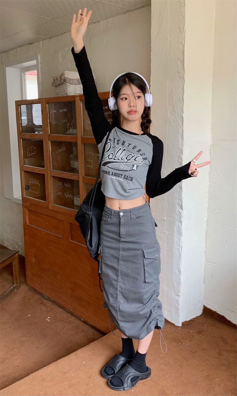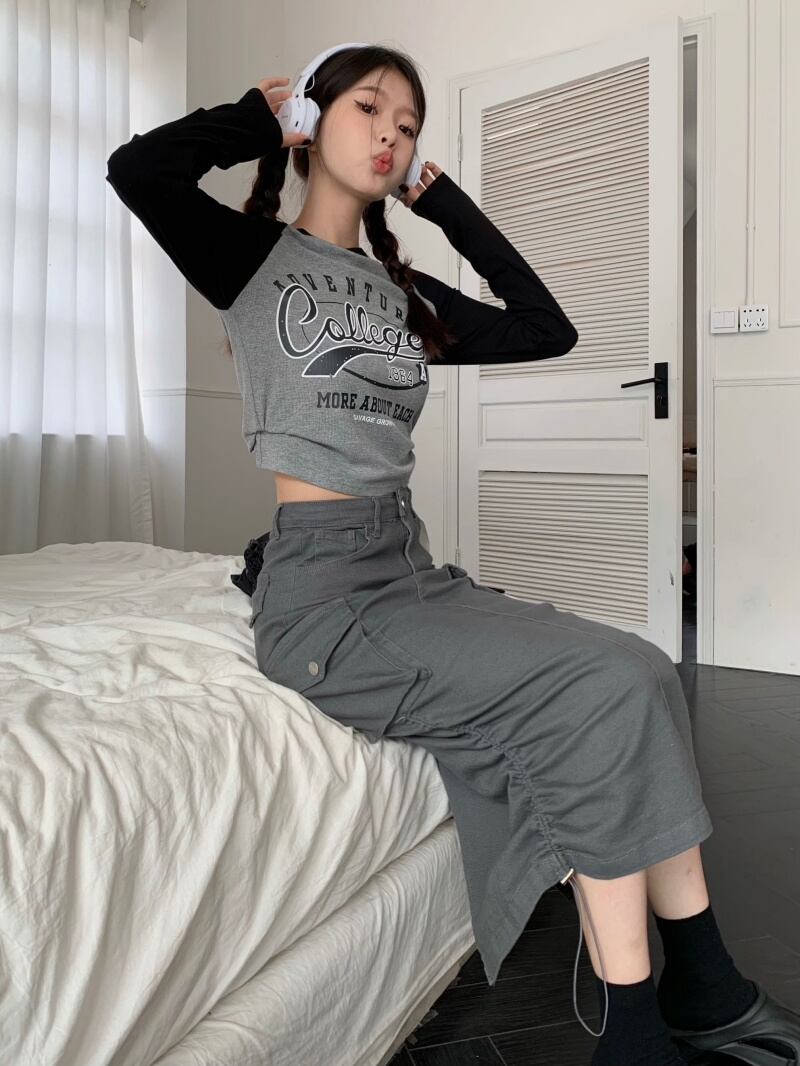 INS 秋新作 超人気 韓国系 シンプル ラウンドネック 長袖 Tシャツ+セミロングスカート