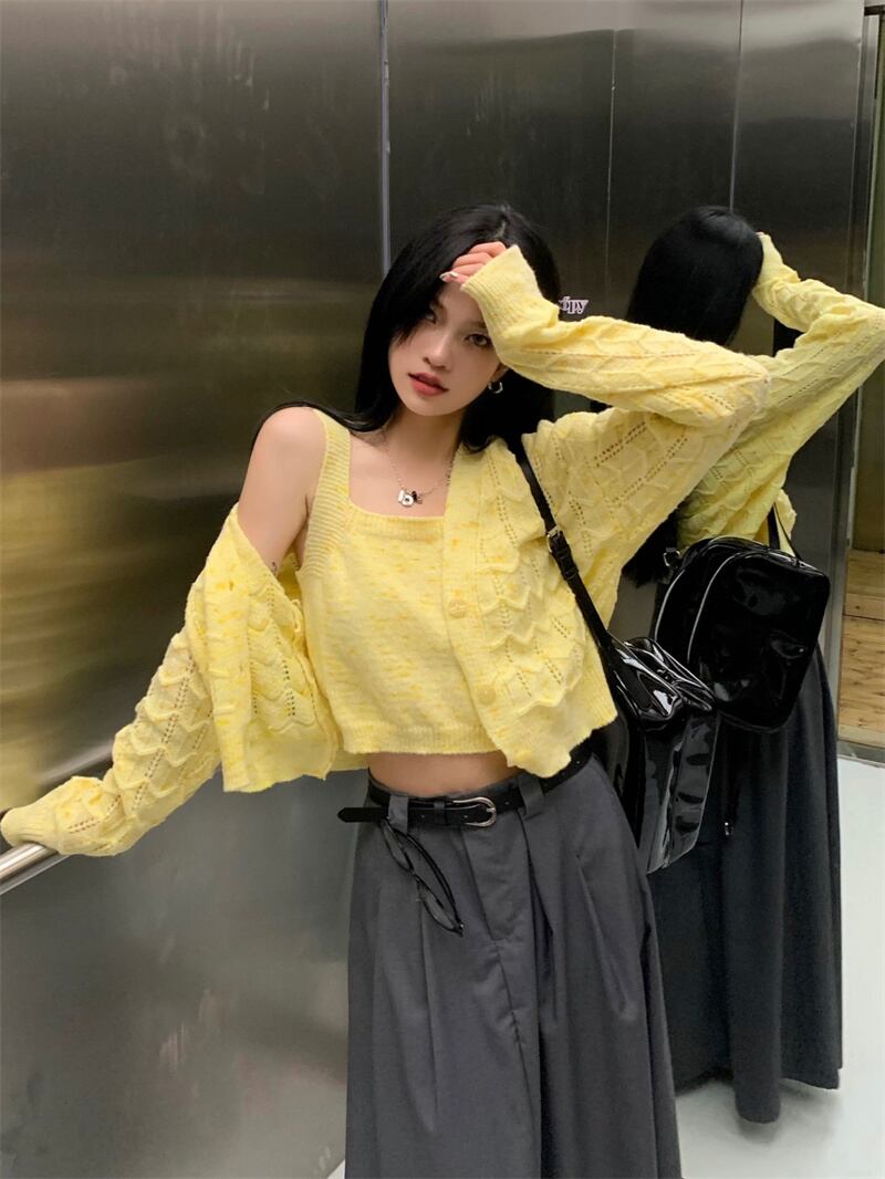 2022冬INS★ファッション超気質 デザイン レイジー風 シック コート+キャミソール