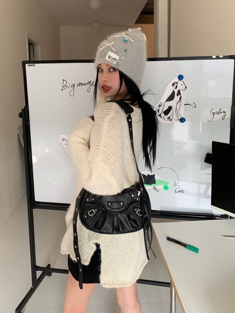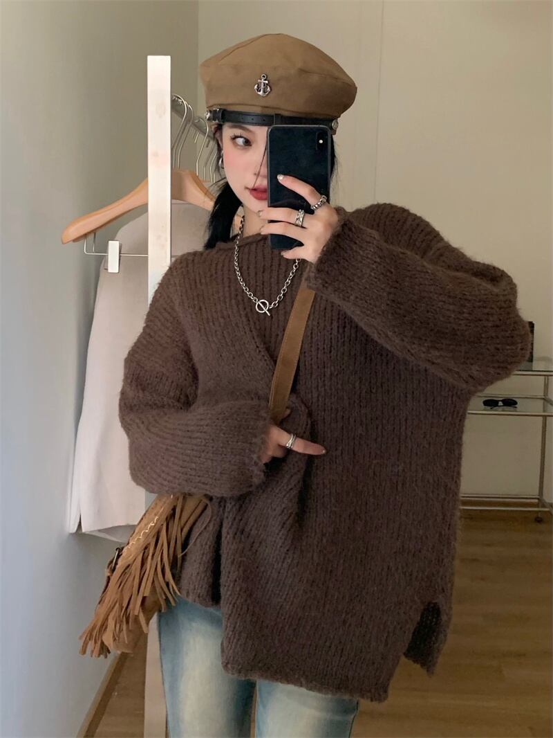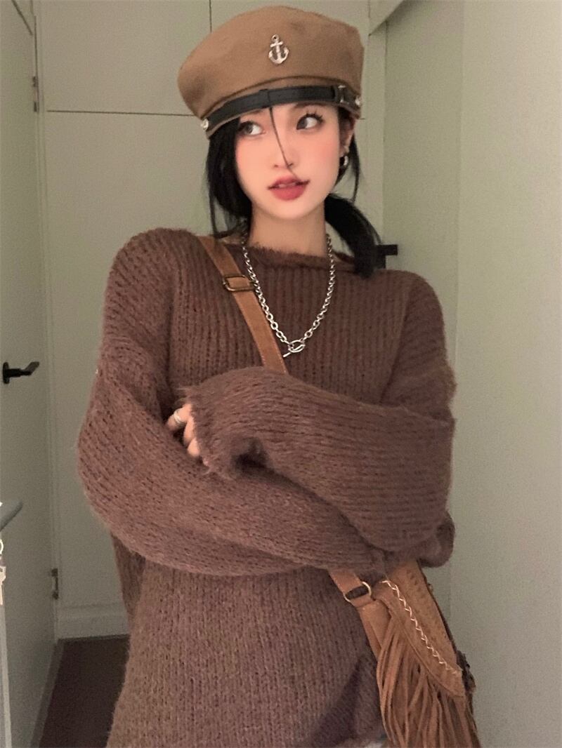 2022冬INS★ファッション超気質 韓国風 レイジー風 無地 センター