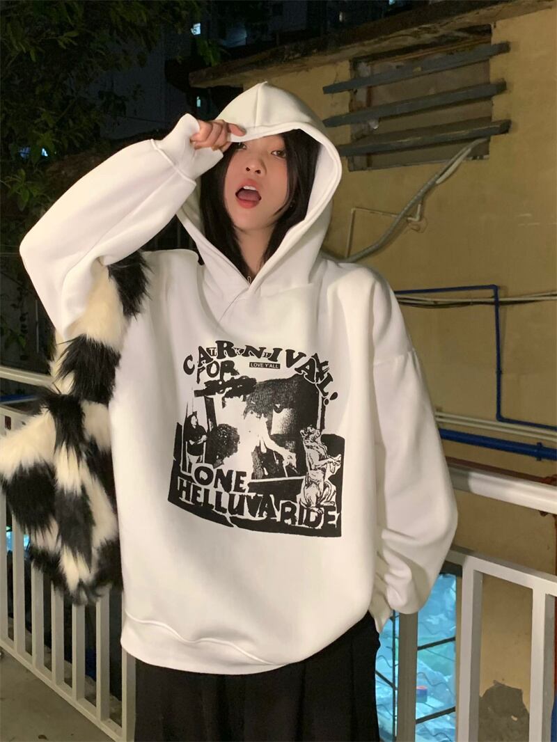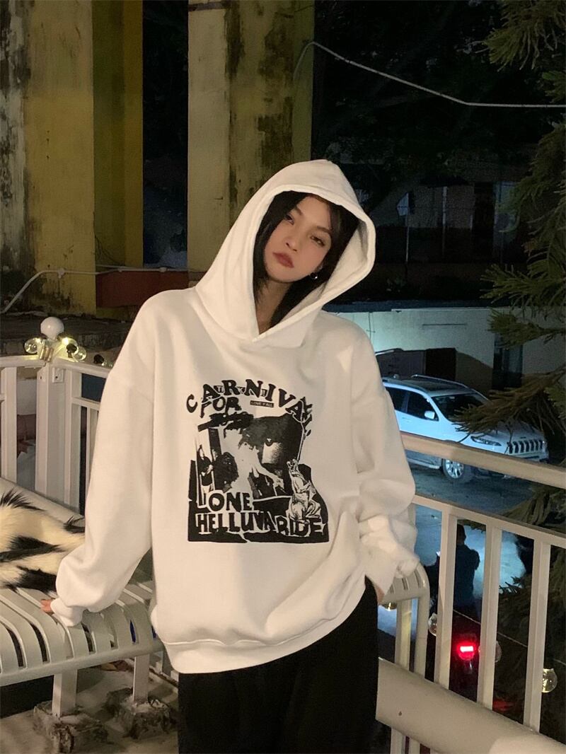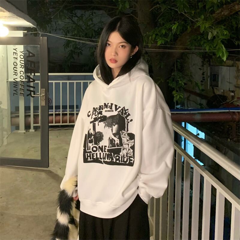 2022冬INS★ファッション超気質 韓国風 プリント パーカー