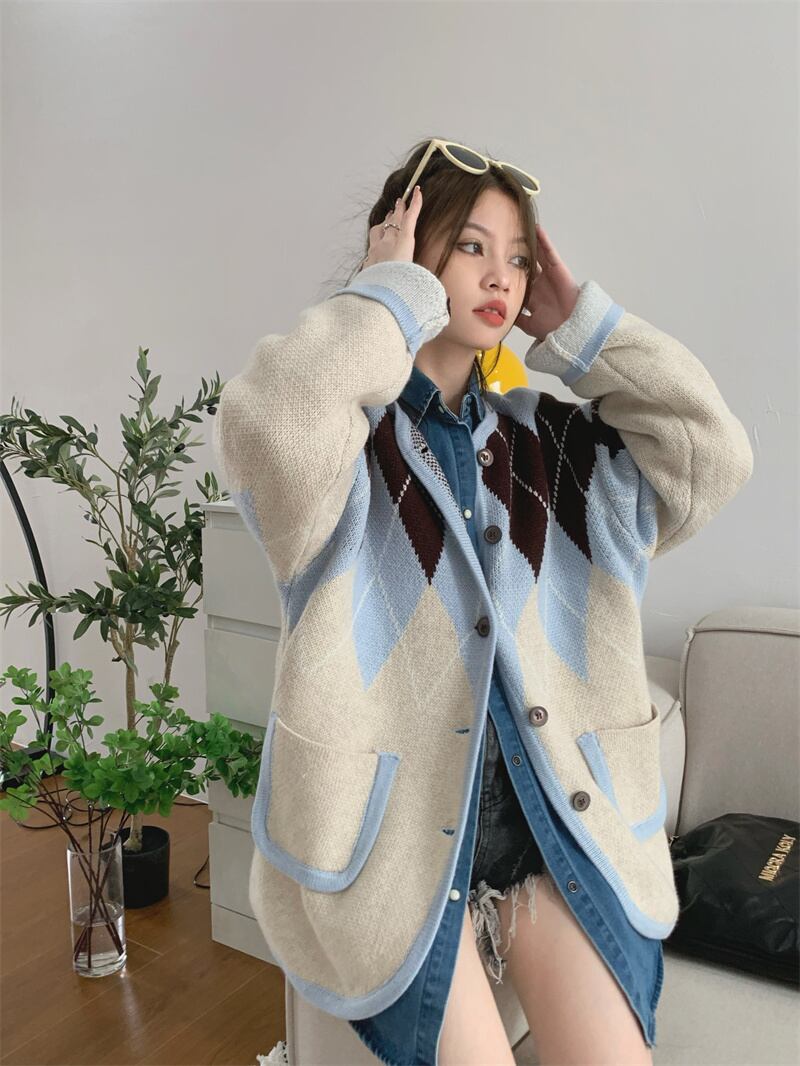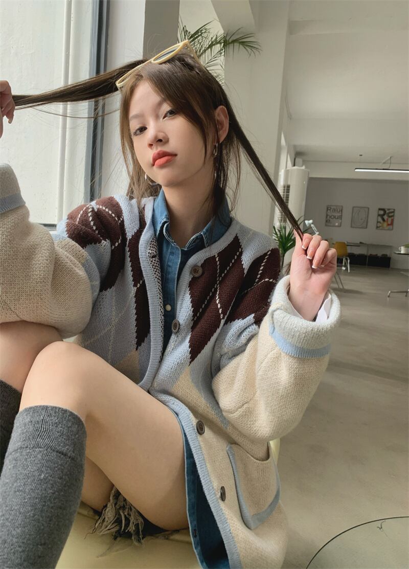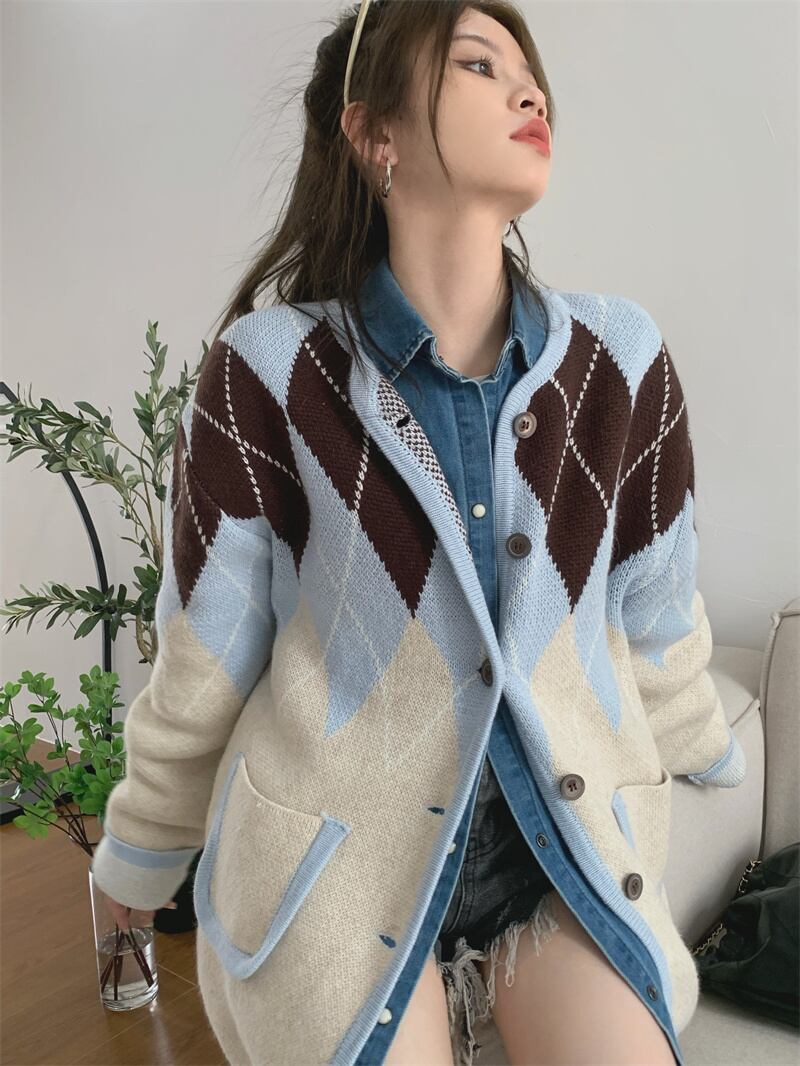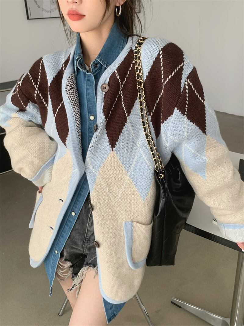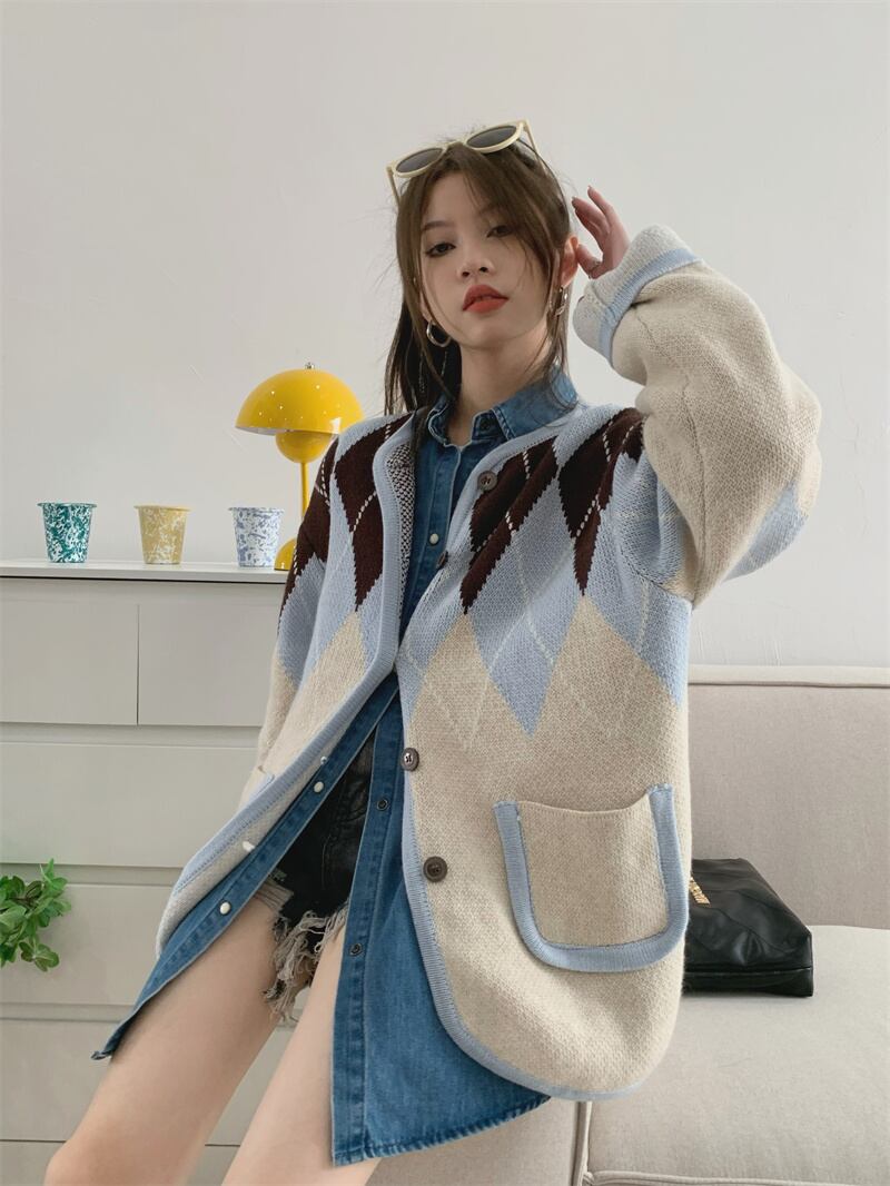 INS 冬新作 超人気 シンプル 韓国系 幾何様子 カーディガン ニット コート