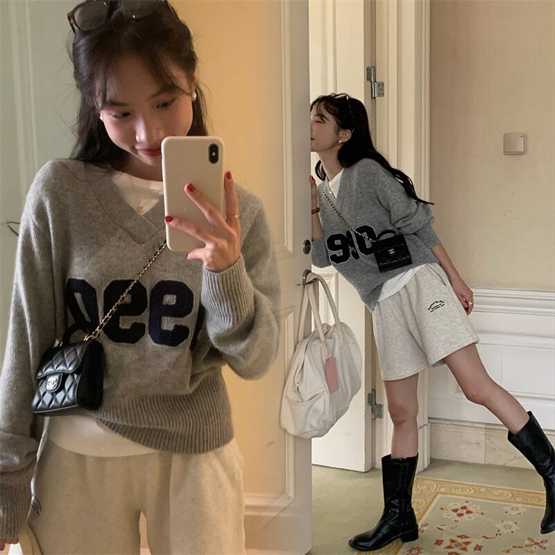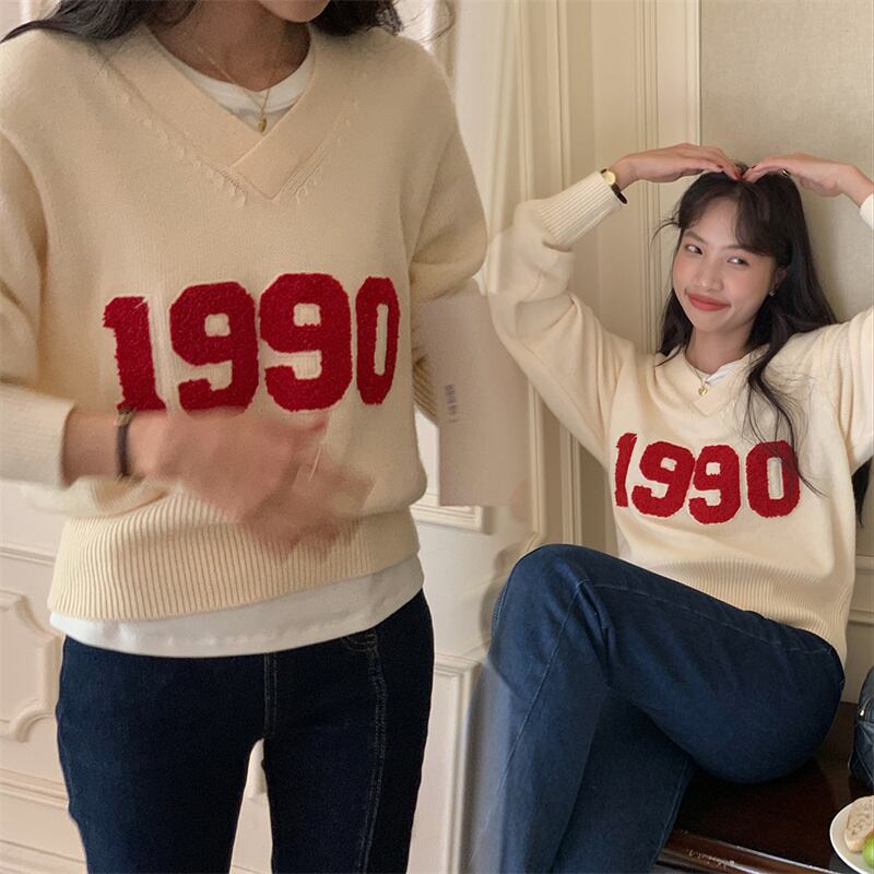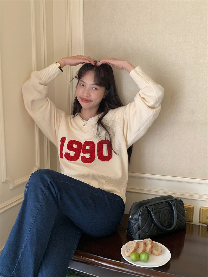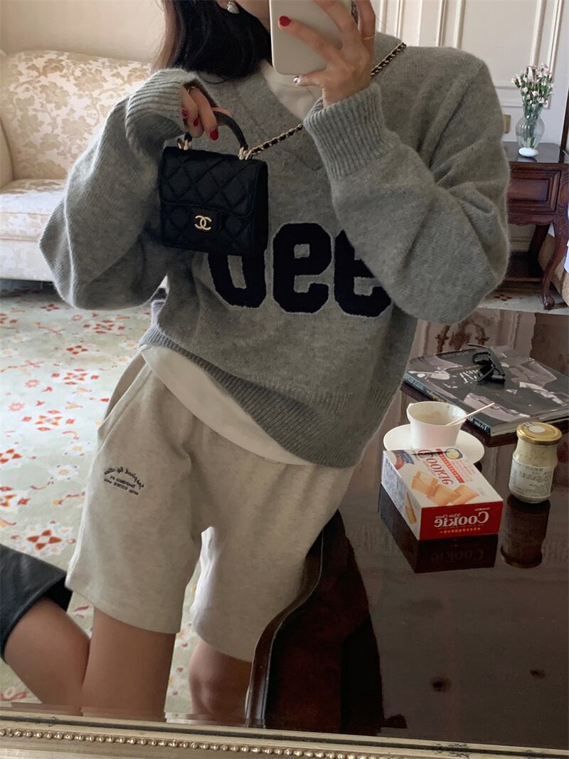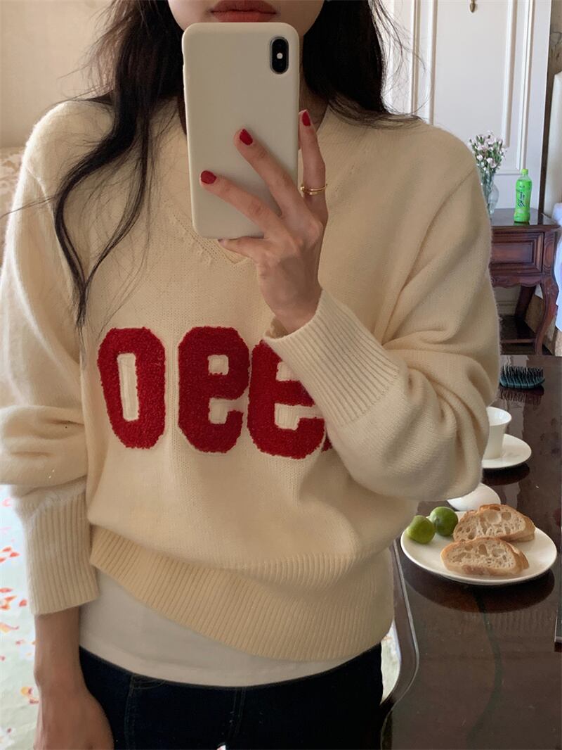 INS 秋新作 レトロ ニット生地 刺繡 デザイン セーター/カットソー