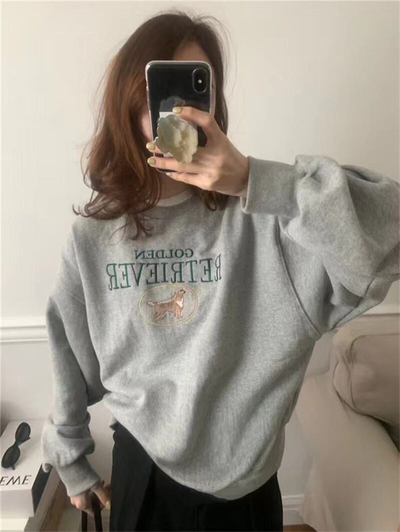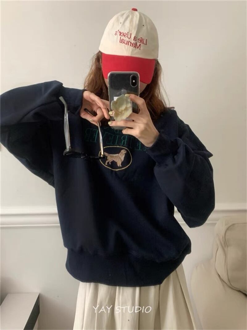 INS 秋新作 超人気 シンプル 韓国系 優しい印象 刺繡 トップス