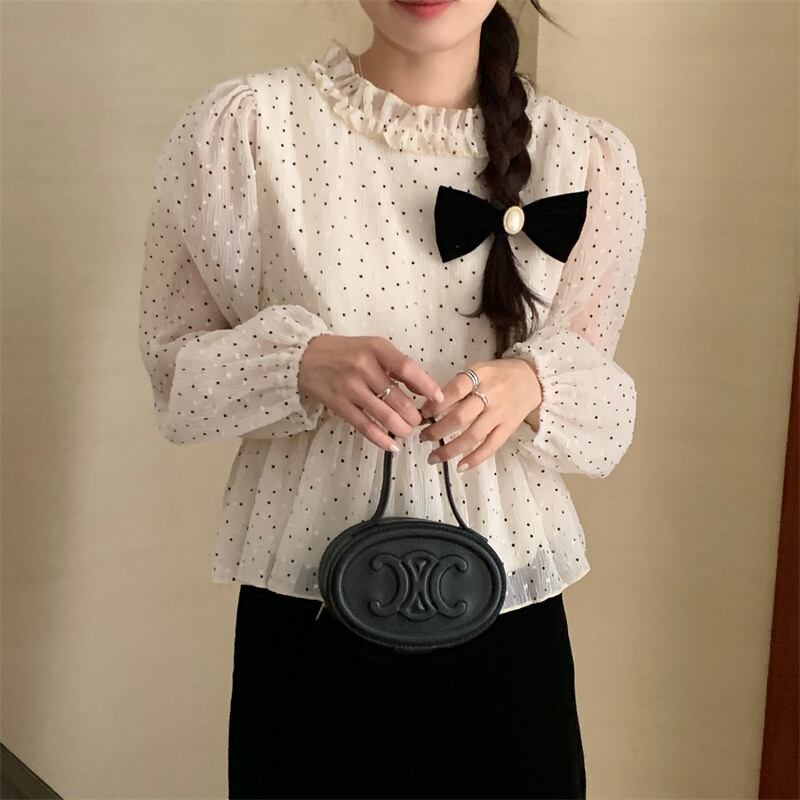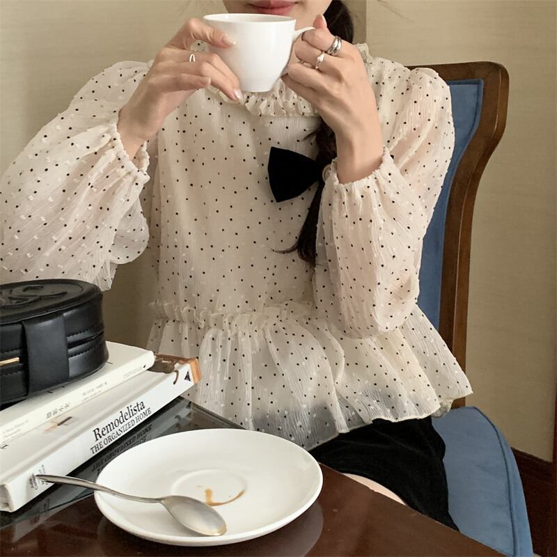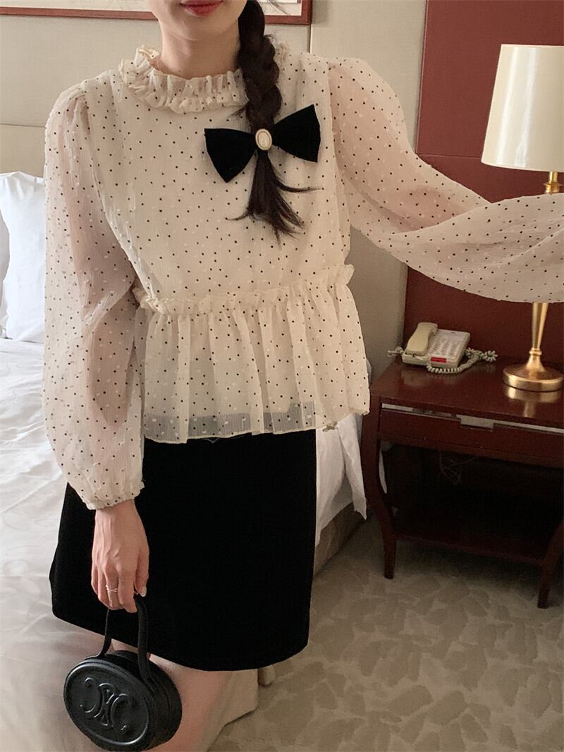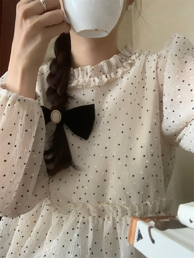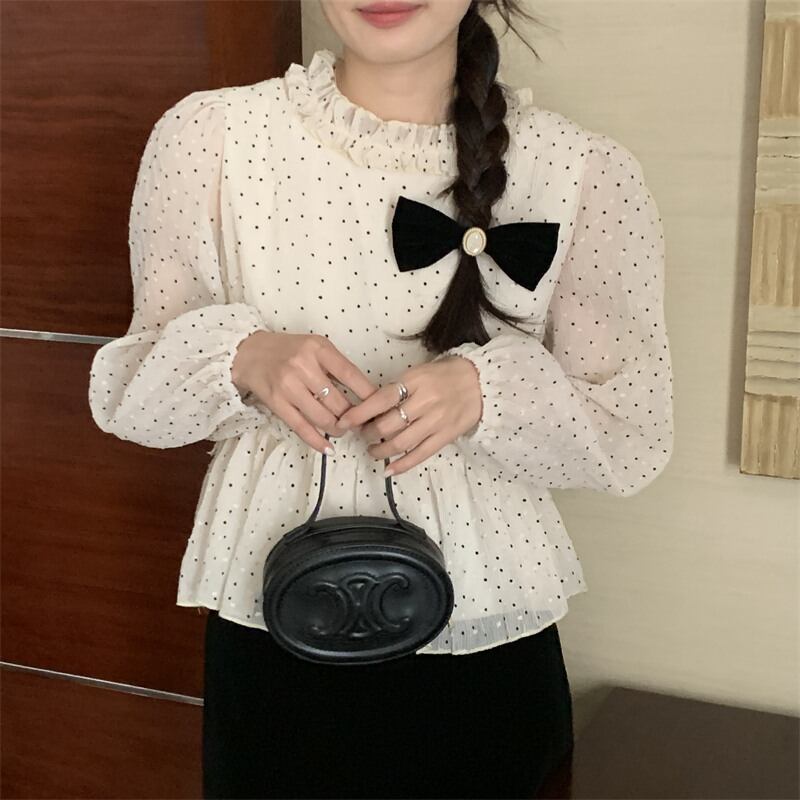 INS 秋新作 超人気 シンプル 韓国系 優しい印象 ドット シャツ/ブラウス